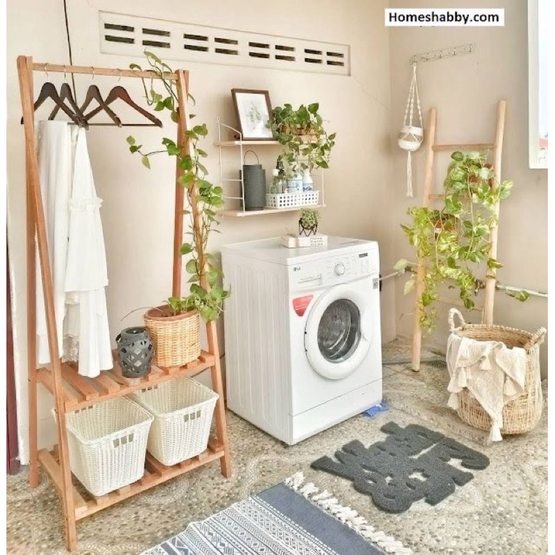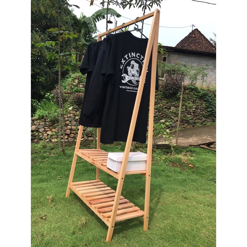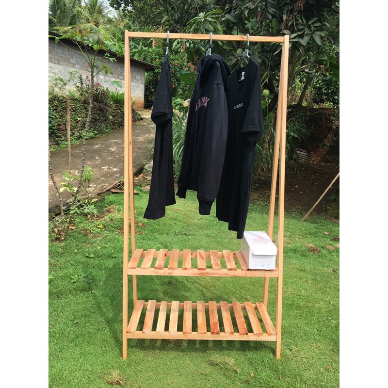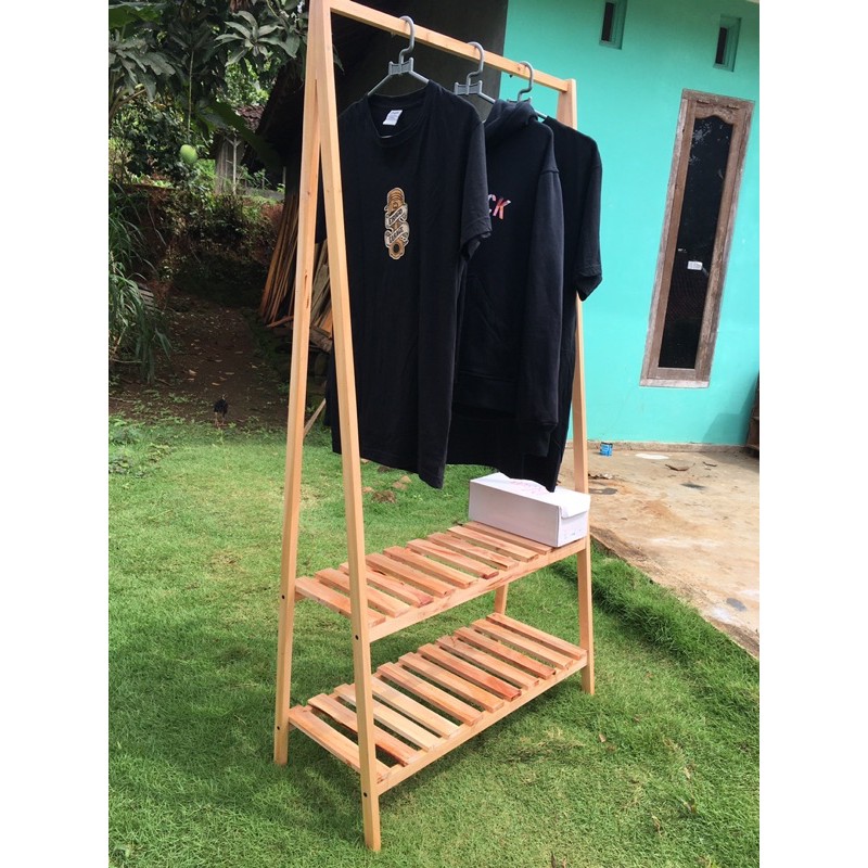 Stand hanger 2 papan / hanger baju kayu / gantungan baju