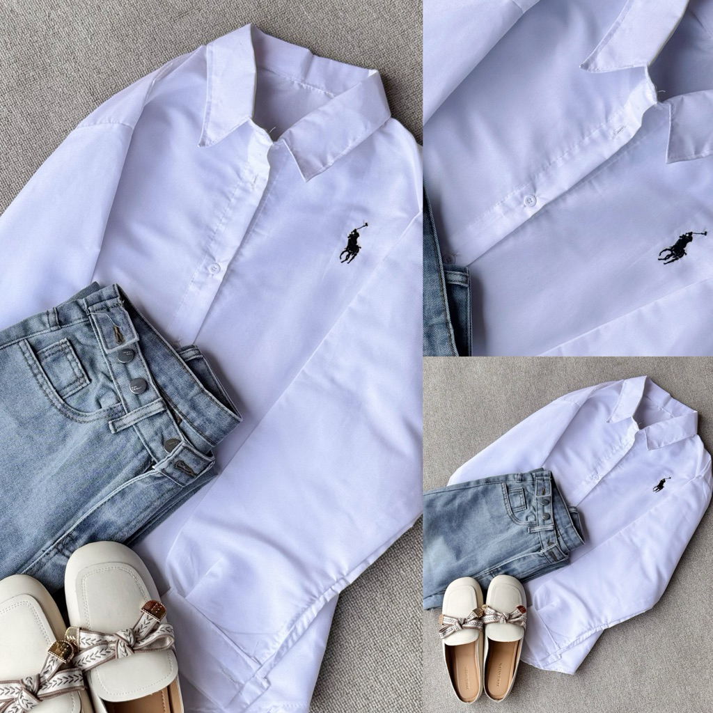 KEMEJA WANITA BORDIR LENGAN PANJANG ALL SIZE/ KEMEJA KATUN KEKINIAN