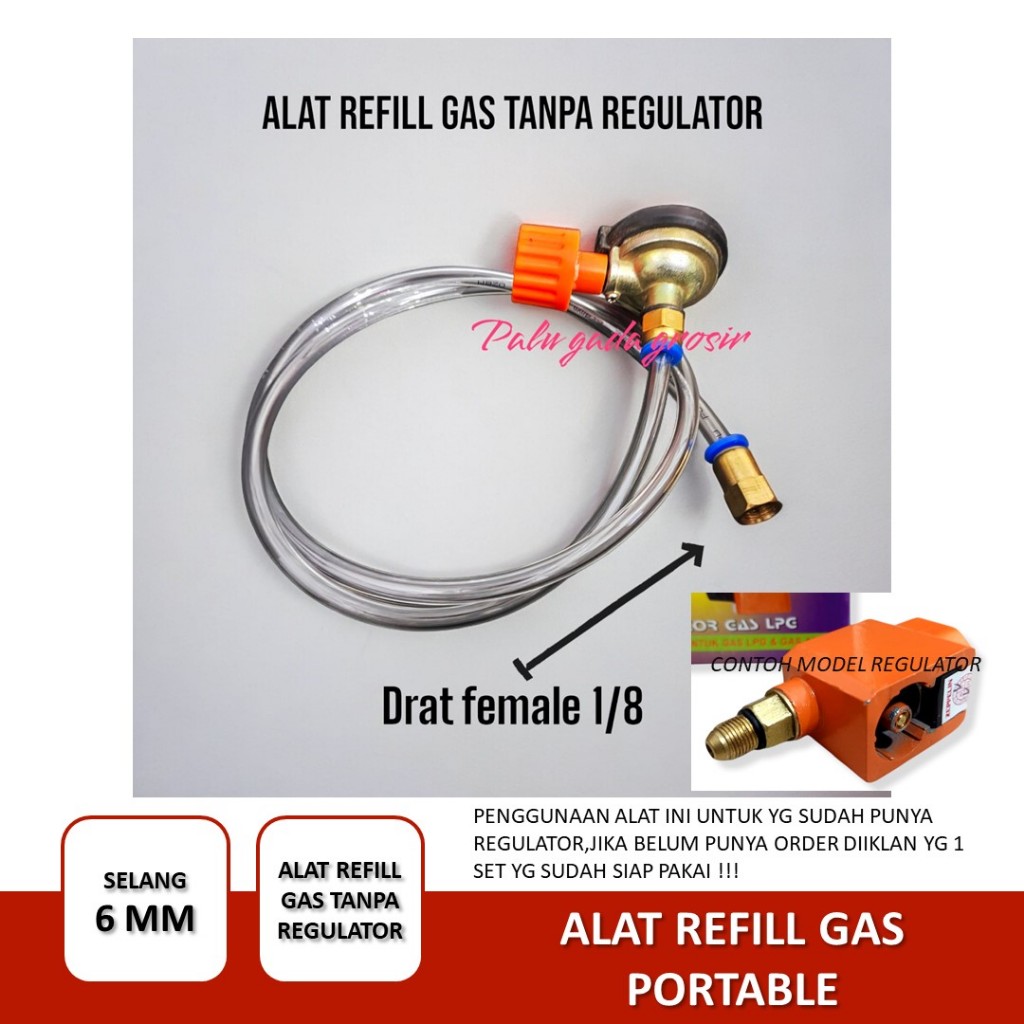 Terbaru Alat Refill Isi Ulang Gas Portable Kaleng TANPA REGULATOR Selang 6 mm Female