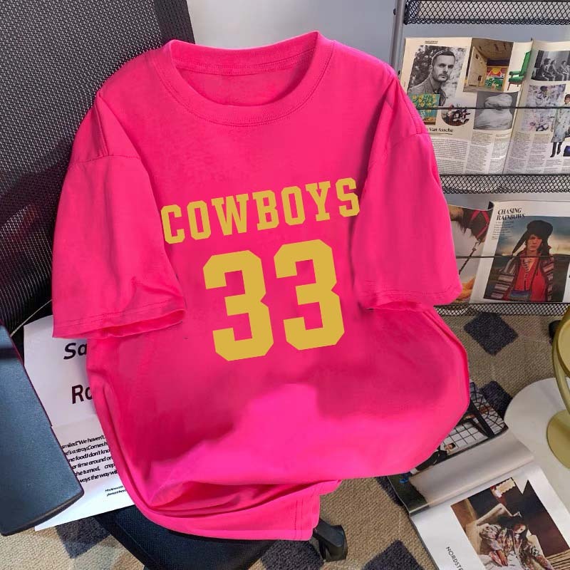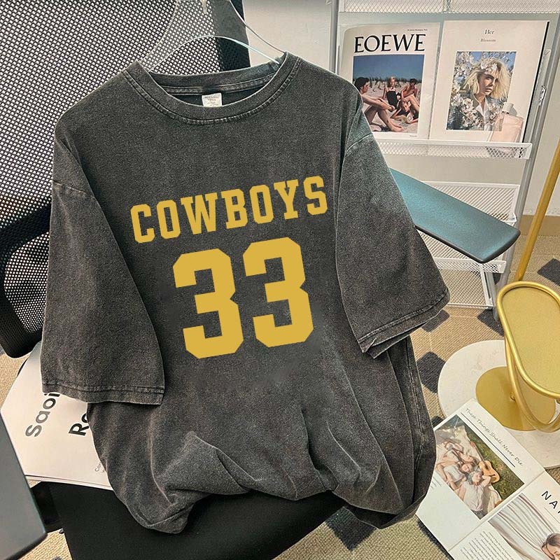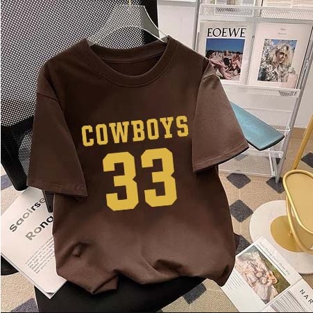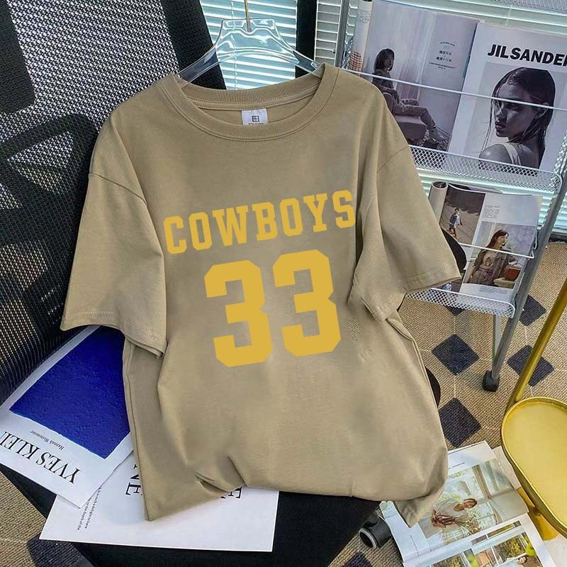 YUYU STUDIO Kaos "COWBOYS-33" bergaya Harajuku dengan angka dan huruf | Kaos Wanita Distro Original 100% | Kaos Wanita Premium Tebal | Baju Oversize Wanita | Fashion korean style baju kaos oversize | Kaos Oversize Wanita Kaos Putih | 10.25