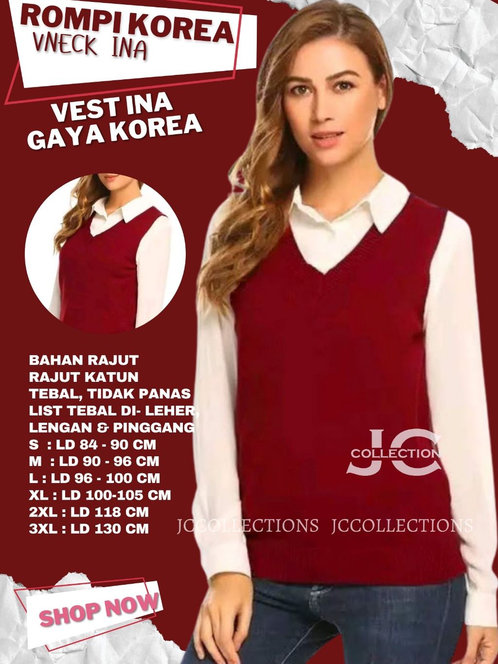 Rompi Rajut Wanita Polos Ina / Women Knit Vest Inna Vest Knit Korea Style - JCCollections