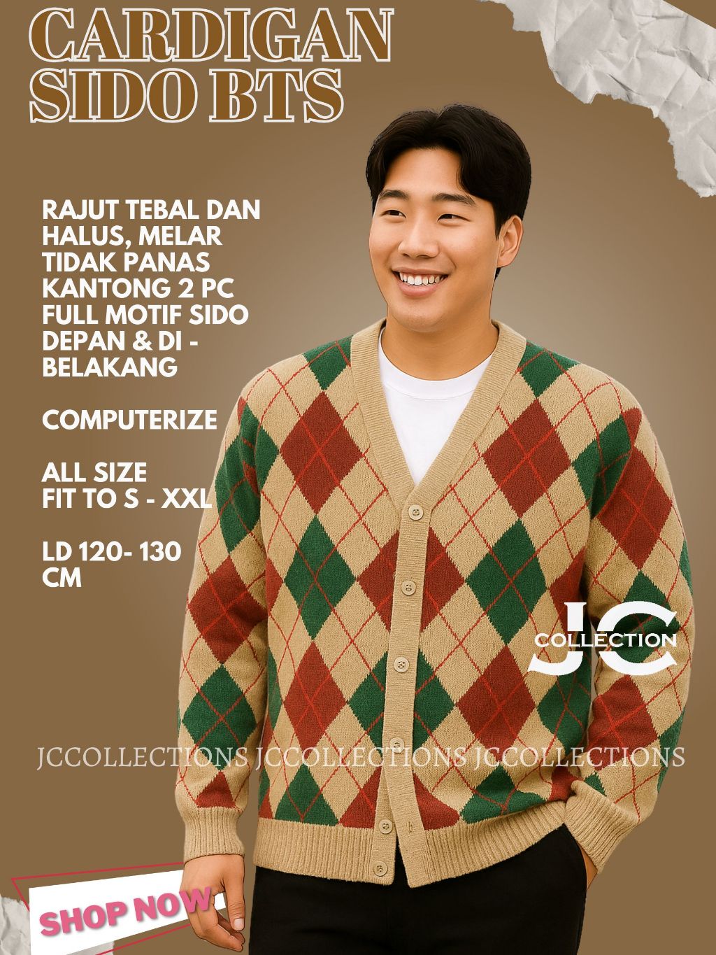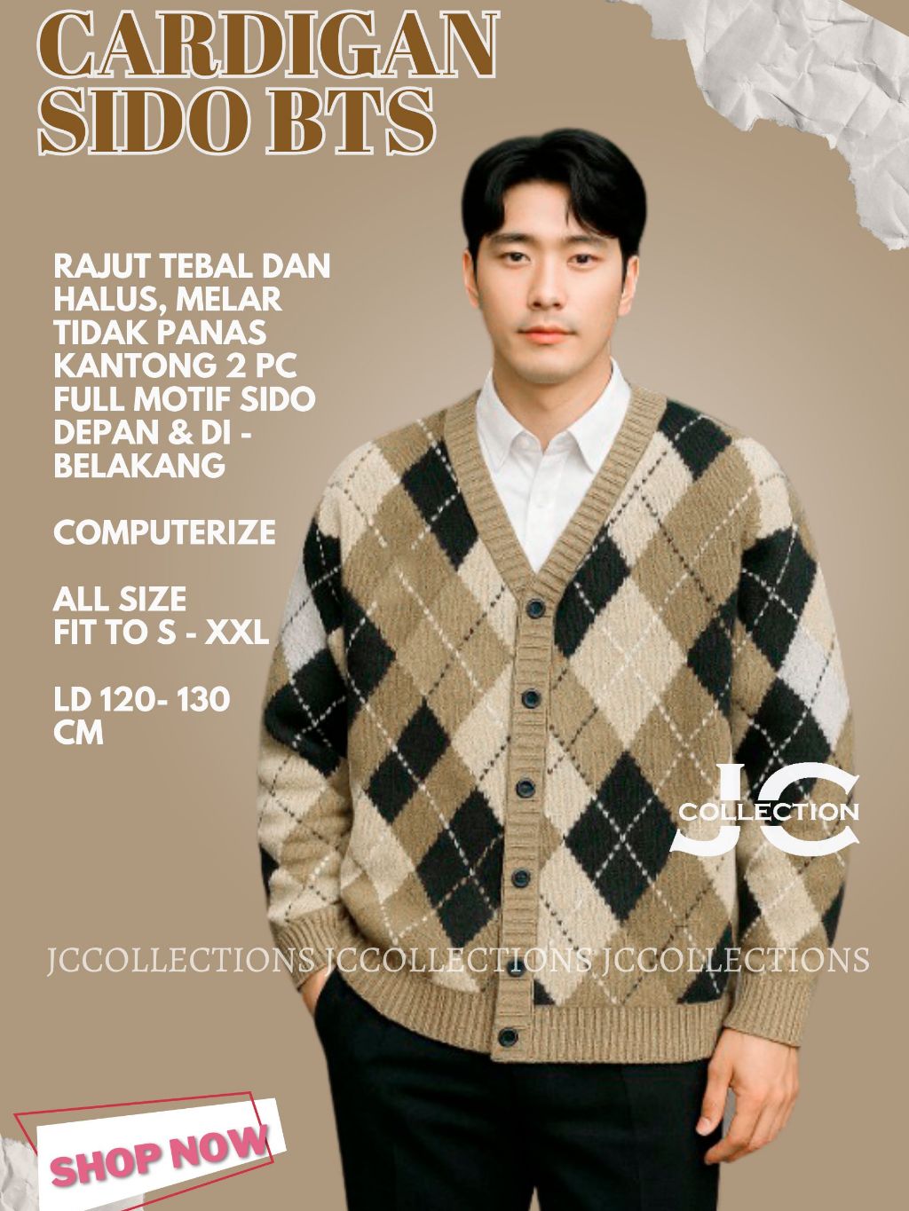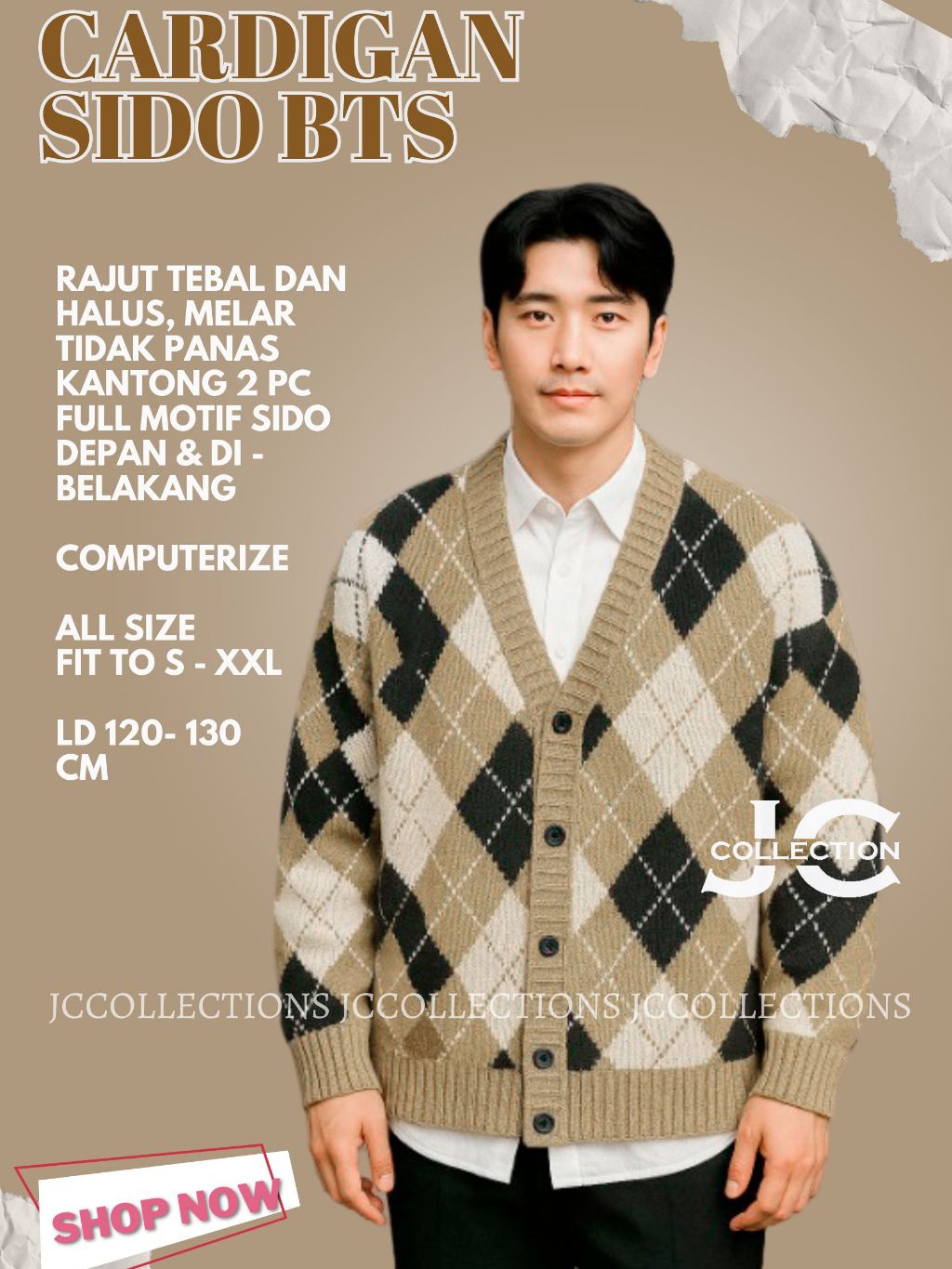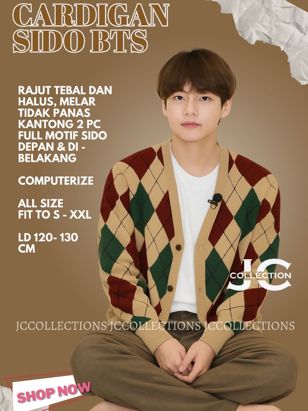 Cardigan Sido Taehyung / Kardigan Sido Diamond BTS - JCCollections.id / Kardigan BTS Kotak Diamond