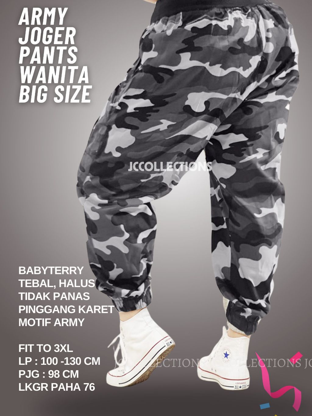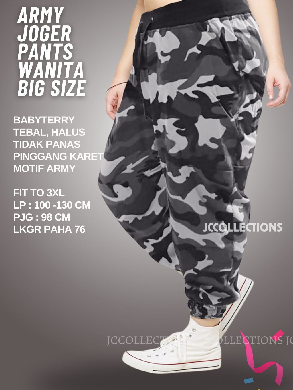 Celana Panjang Wanita Jumbo Jogger Army Loreng Wanita Big Size Long Pants - JCCollections