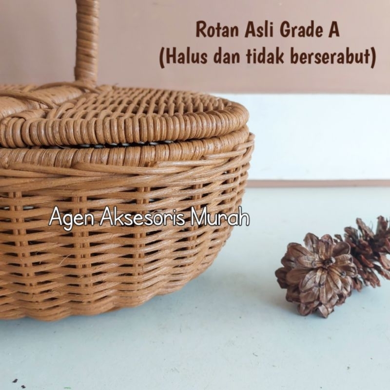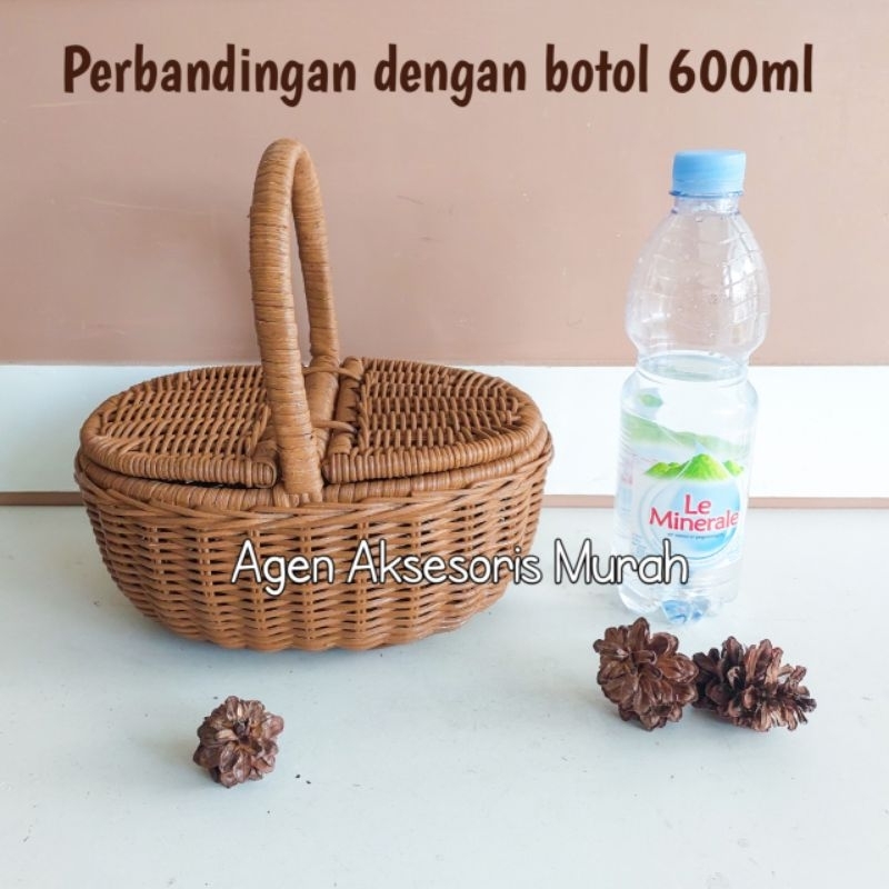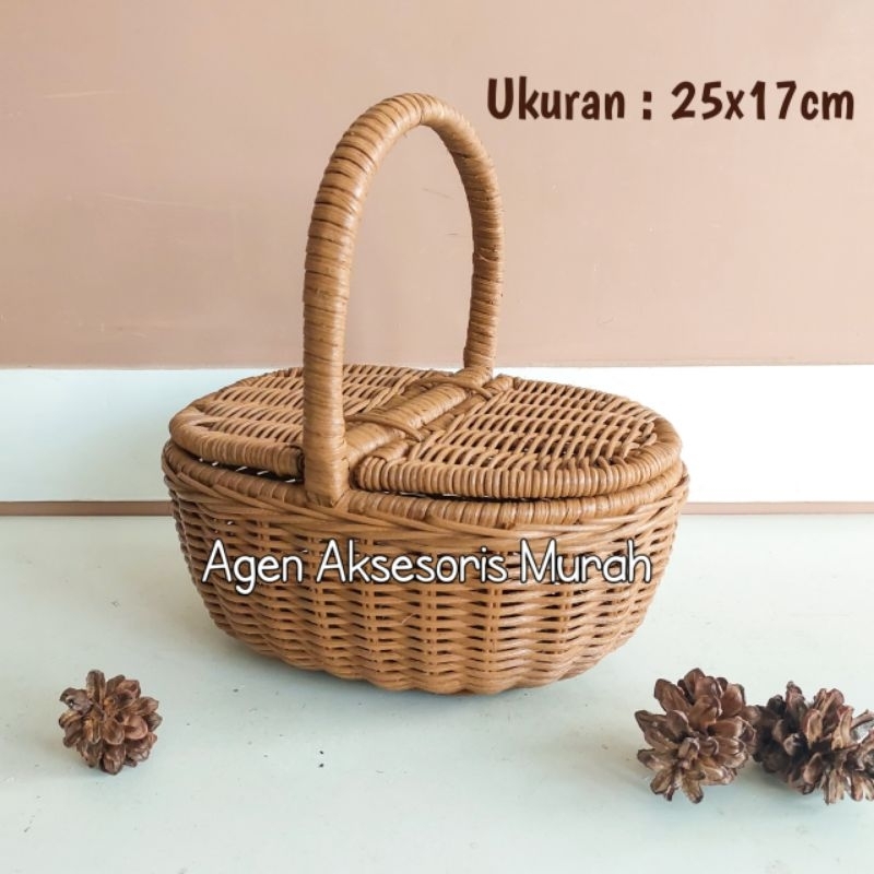Keranjang Piknik Rotan - Piknik Oval Tutup Size S Warna