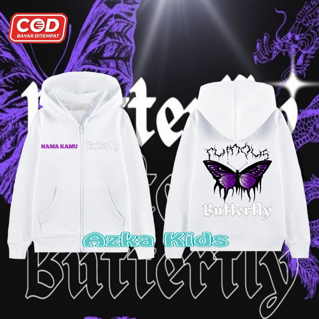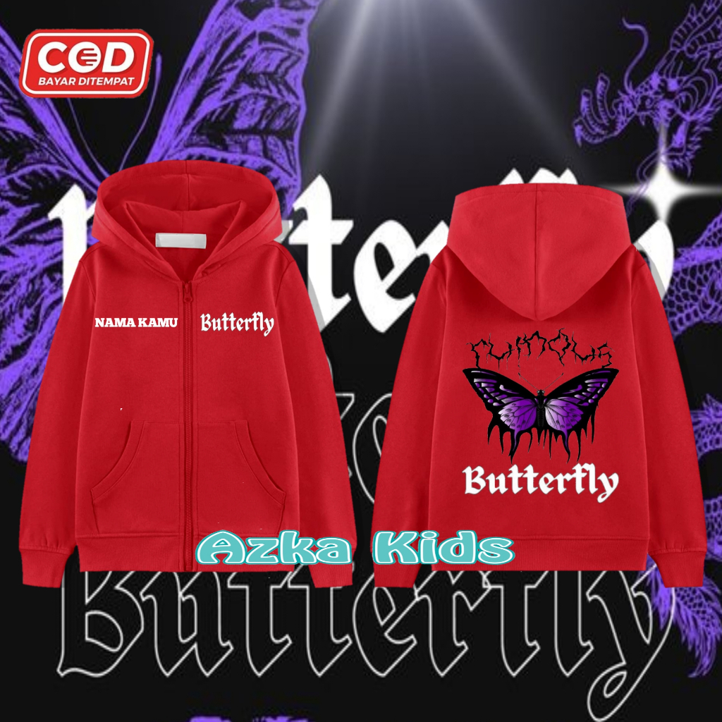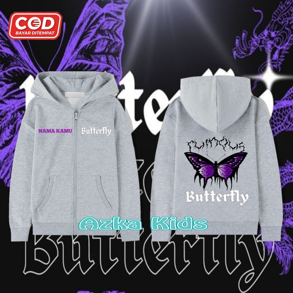 Hoodie Zipper KUPU-KUPU Anak Perempuan & Laki-Laki/Jaket Resleting Free Nama