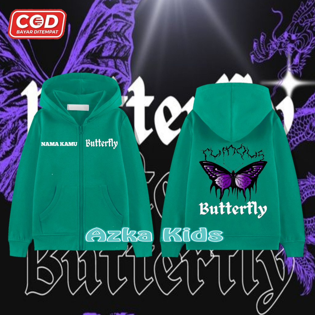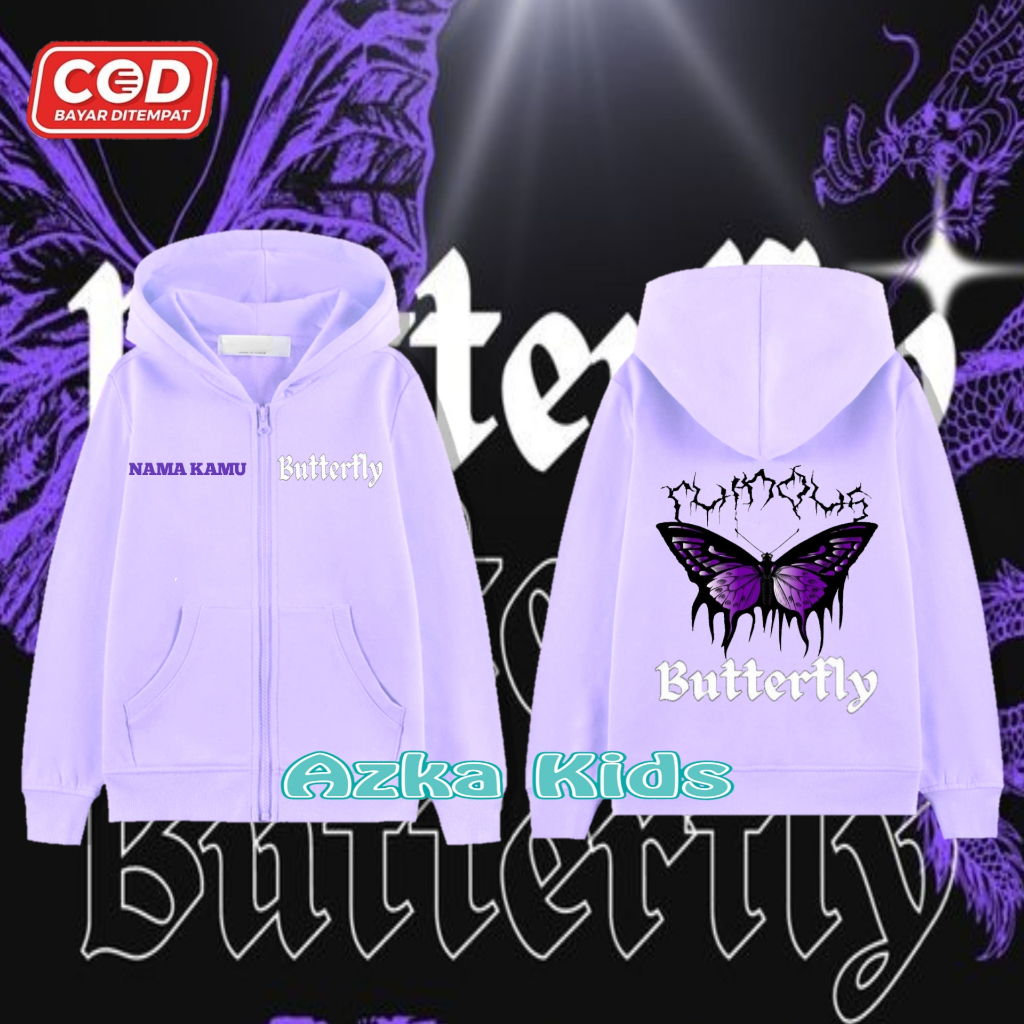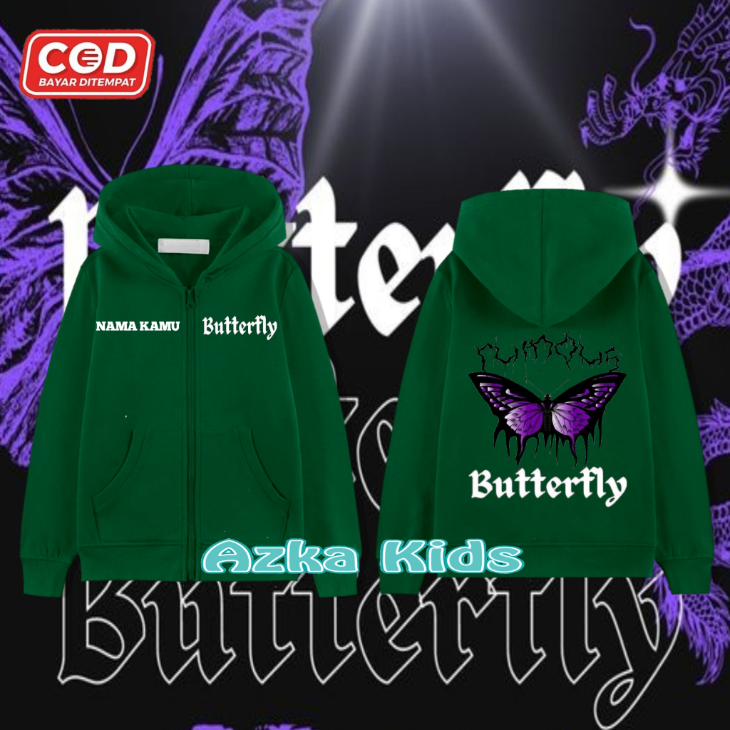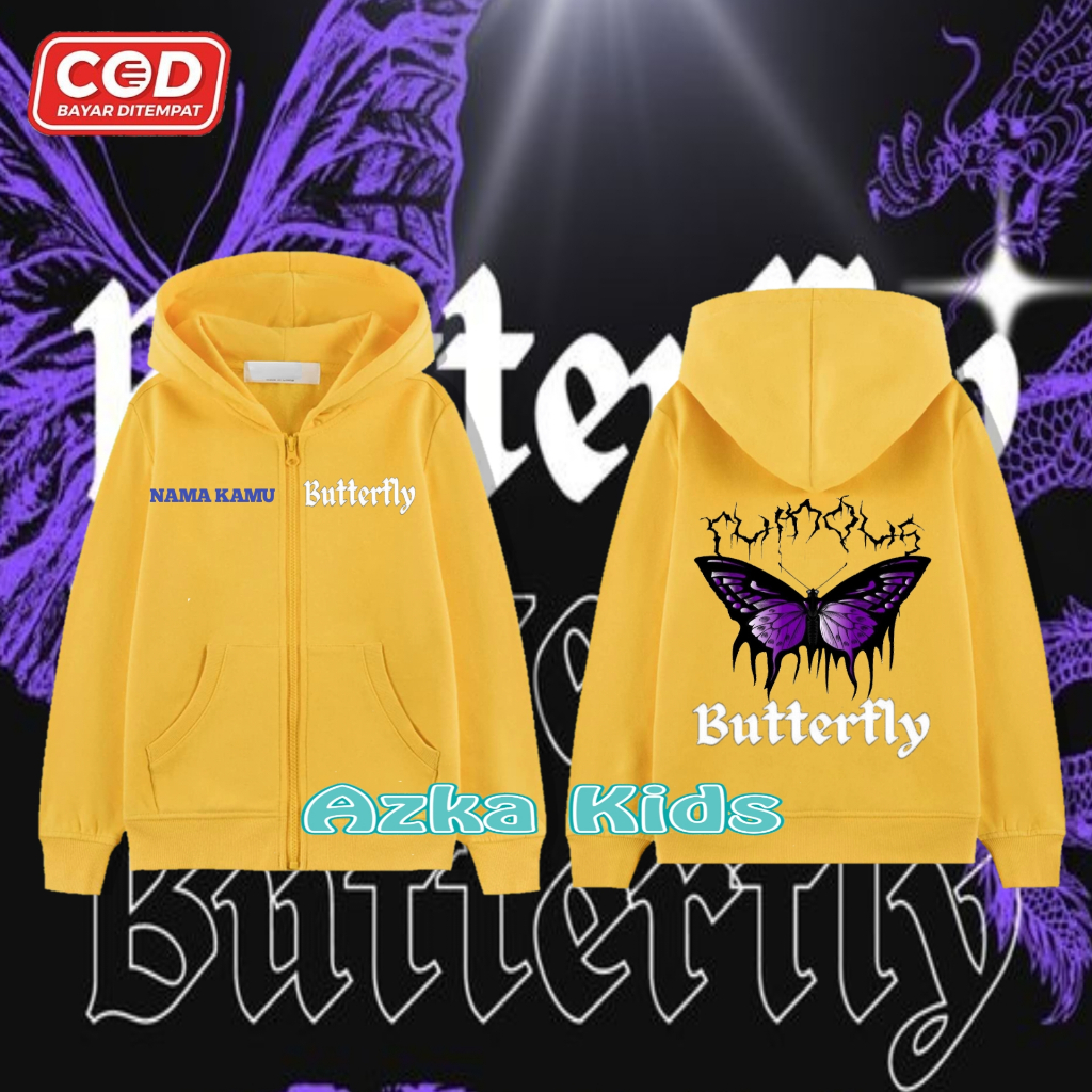 Hoodie Zipper KUPU-KUPU Anak Perempuan & Laki-Laki/Jaket Resleting Free Nama