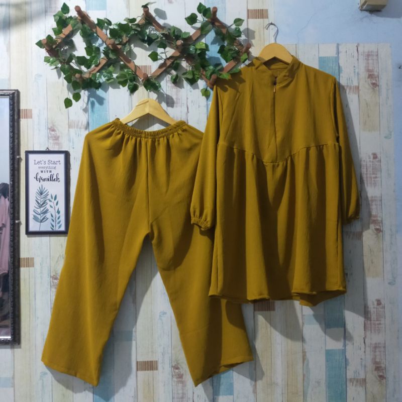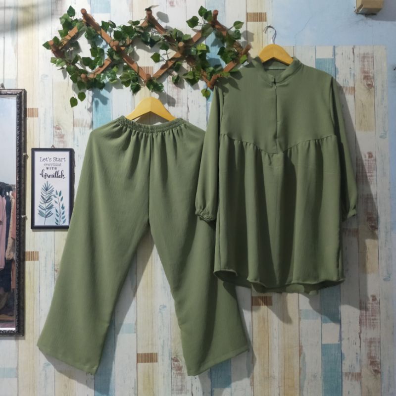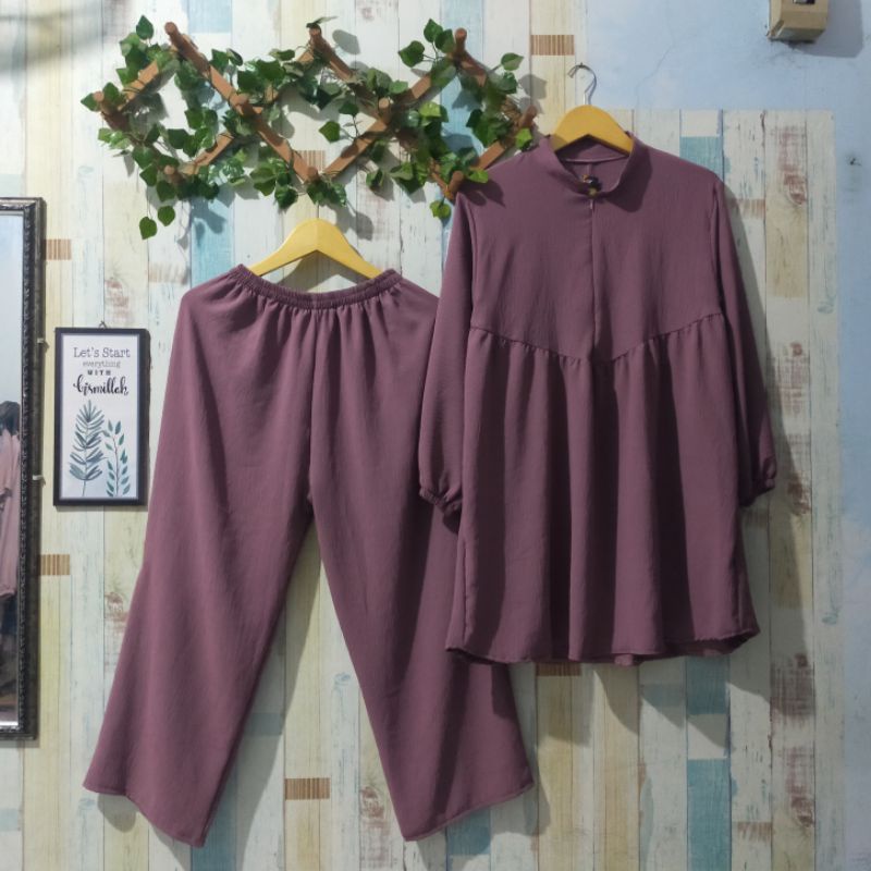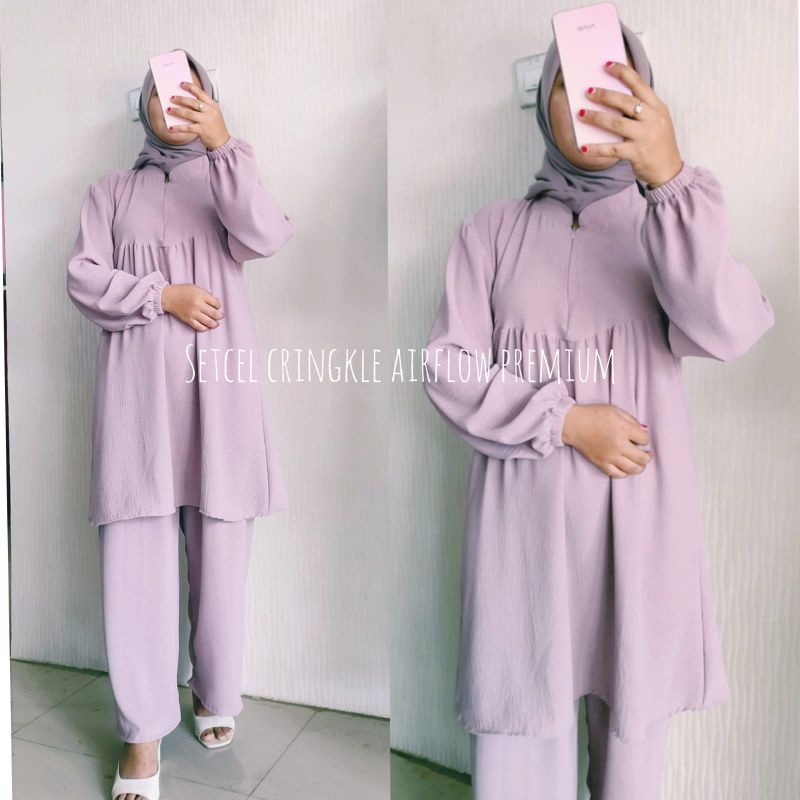 Ld 110 setcel crinkle airflow premium/setelan tunik crinkle airflow premium/setcel tunik crinkle/oneset tunik