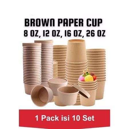 [25pcs] Bowl Paper Brown Cup Brownies + Tutup Premium Cup Mangkok Kertas Food Grade