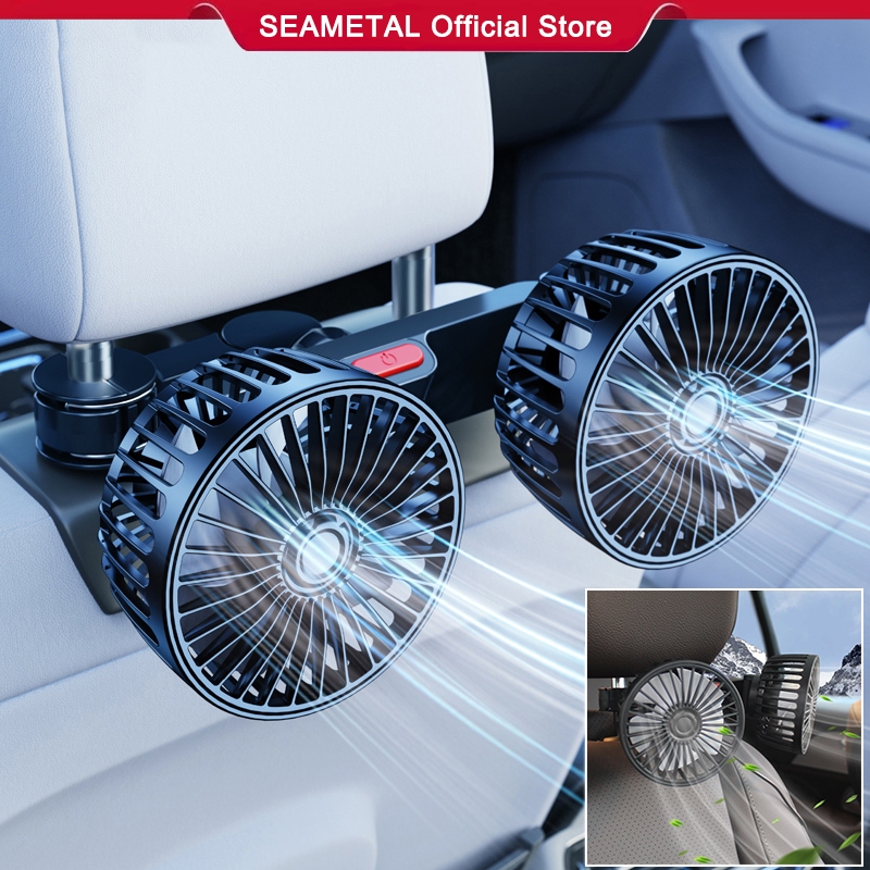 SEAMETAL Kipas Angin Mobil Kipas Kepala Ganda Mobil Pengisi Daya Usb Kipas Angin Pendingin Sandaran Kursi Mobil Kipas Belakang Jok Mobil 3 Kecepatan Mobil Universal 360 Derajat Kipas Angin Berputar
