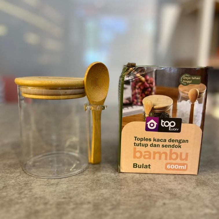 Toples Kaca Aesthetic / Tutup Kayu / Penyimpanan Makanan Bening Transparan Kedap Udara