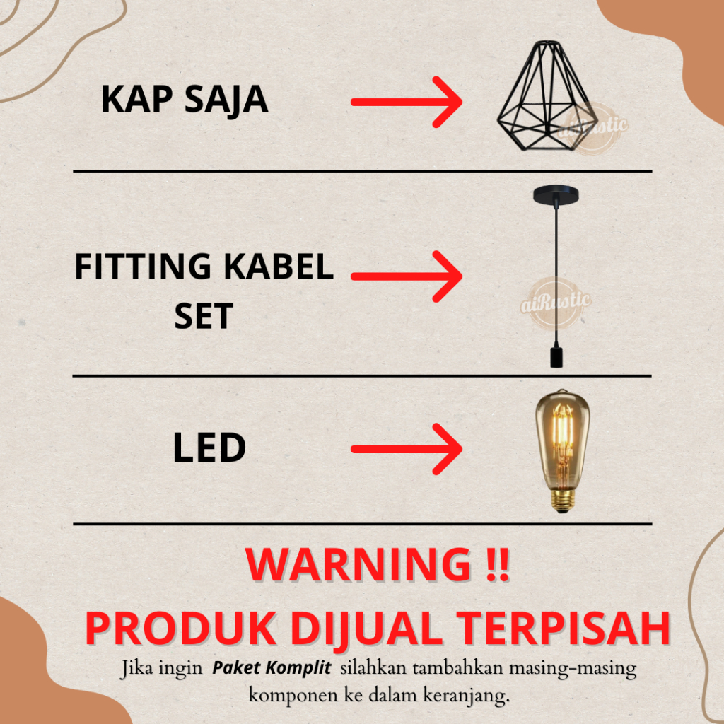 aiRustic - Kap Lampu Hias Gantung Dekorasi Diamond - lampu gantung besi diamond besi