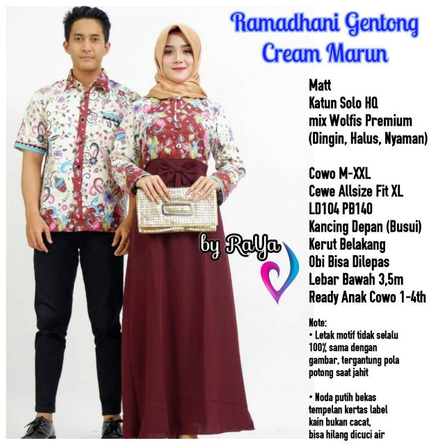 Couple Ramadhani Gentong Cream Marun Sarimbit Batik Ramadhan Family Couple Idul Fitri XL XXL