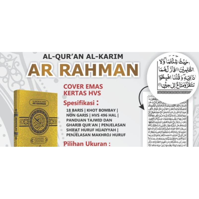 Mushaf al-Quran Emas Ar Rahman 18 Baris B5 19x26 cm Menara Kudus