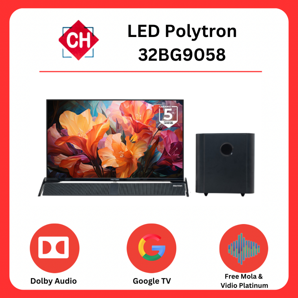 LED TV Polytron 32 Inch 32BG9058 Smart TV Cinemax Google TV Dolby Audio Garansi Resmi