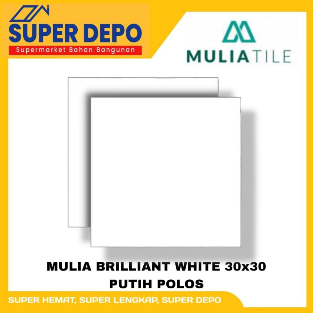 KERAMIK MULIA 30X30 CM - BRILIANT WHITE PUTIH POLOS