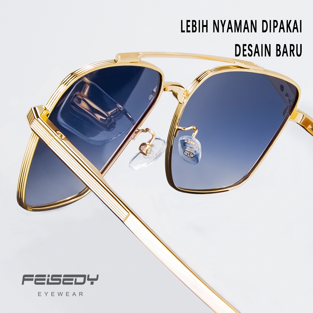 FElSEDY Kacamata Hitam Rectangular Polarized Aviator Sunglasses Pria Retro Pilot Shades Driving UV400 Protection RC2502-3 Gold—Blue