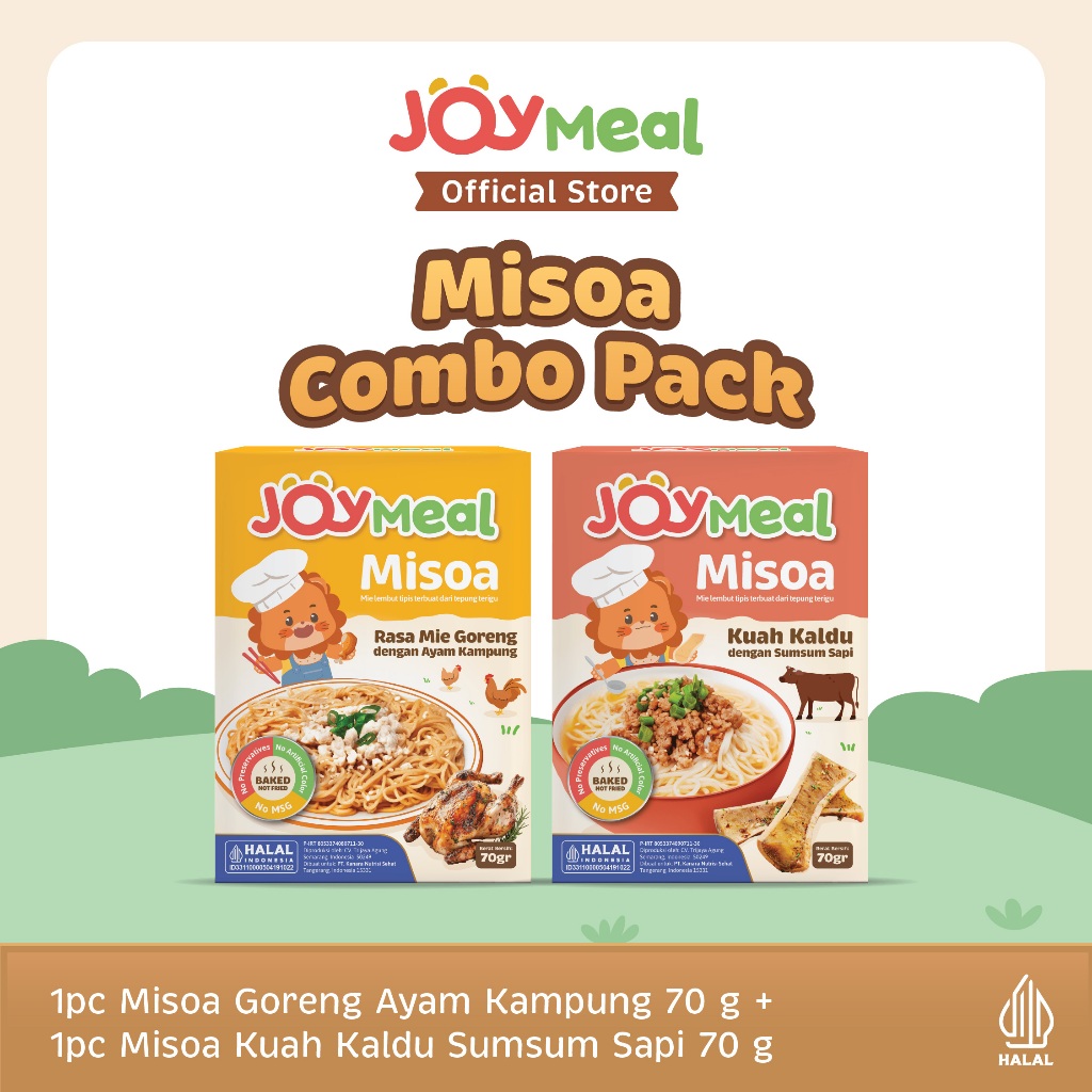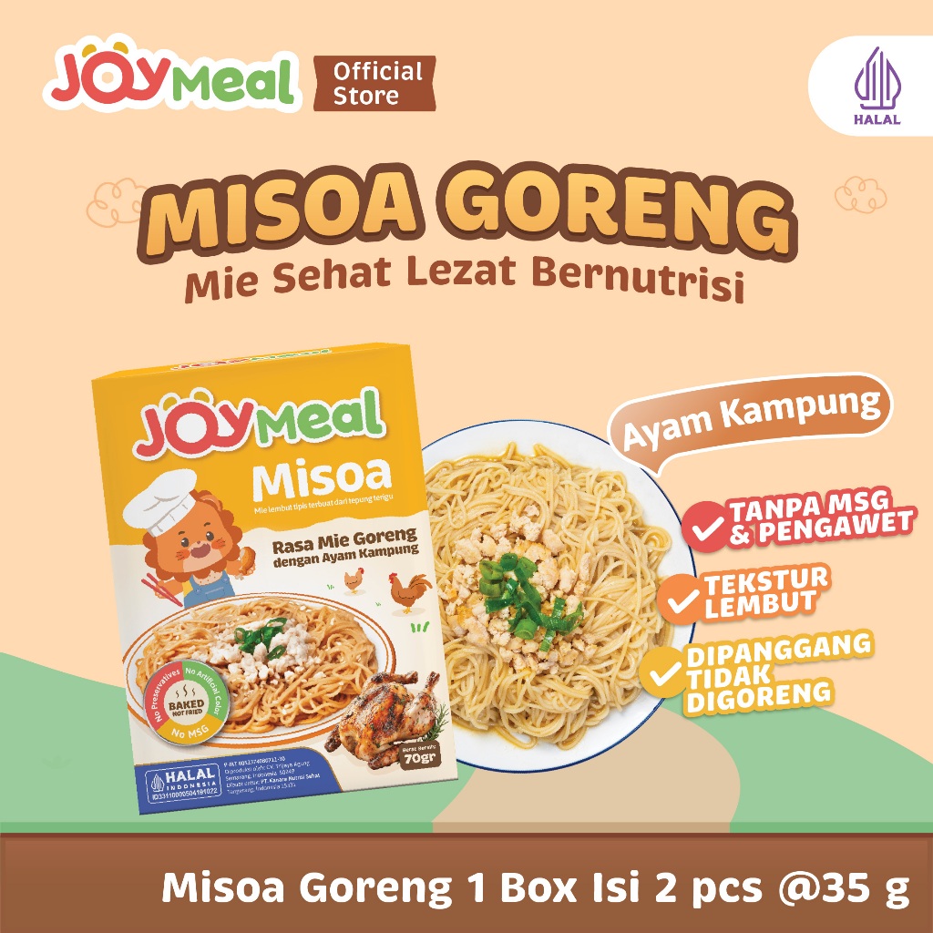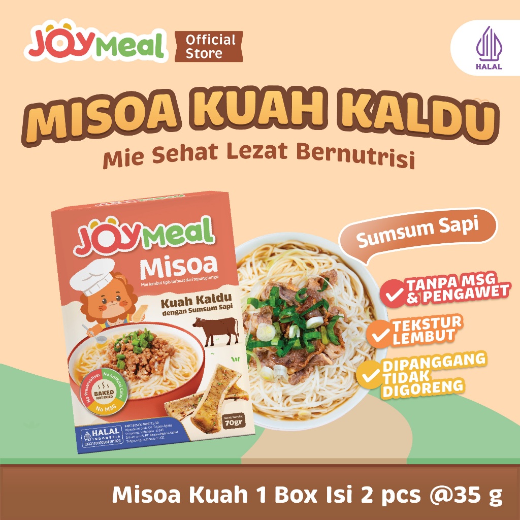 JoyMeal Misoa 70gr | Mie Sehat Lezat Bernutrisi dengan Rasa Kuah Kaldu Sumsum Sapi dan Rasa Mie Goreng Ayam Kampung | Misoa Halal untuk Bayi & Anak