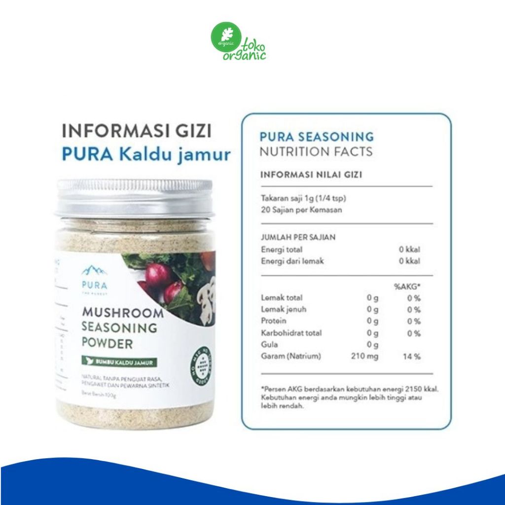 PURA Mushroom Seasoning Powder, Kaldu Jamur (100gr) | Bumbu Kaldu Jamur, Kaldu Jamur MPASI, No Gula No MSG