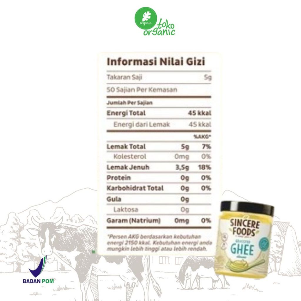 Sincere Foods Ghee Grass Fed Original Butter Minyak Samin | Butter untuk MPASI No Salt, Bebas Laktosa - 80Gr