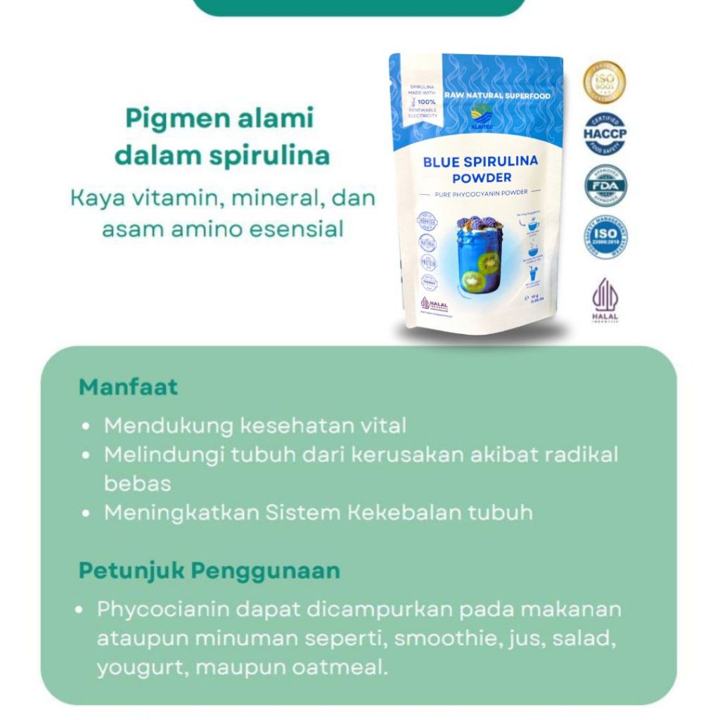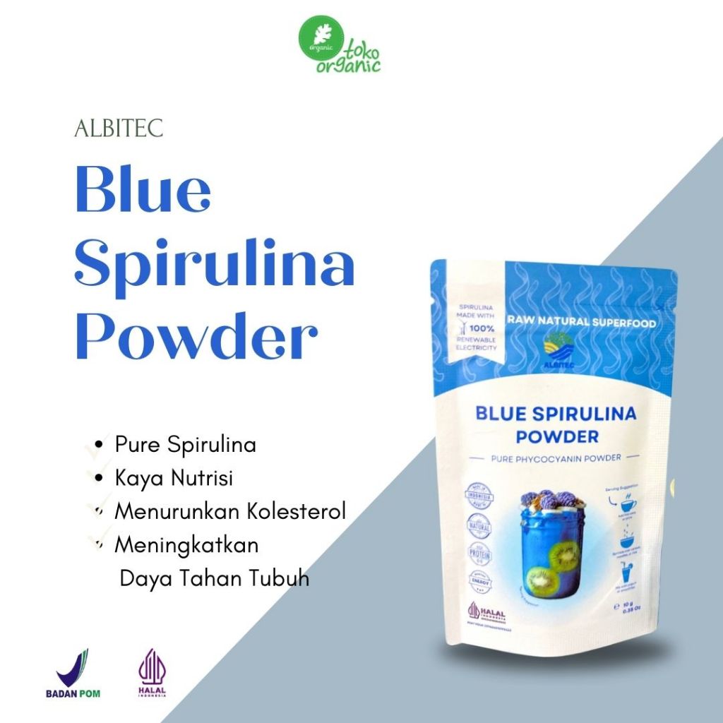 Albitec Blue Spirulina Powder (10gr) Powder Pure Phycocianin Spirulina, Spirulina Biru Bubuk, Superfood Spirulina, Spirulina untuk Kesehatan, dan Daya Tahan Tubuh
