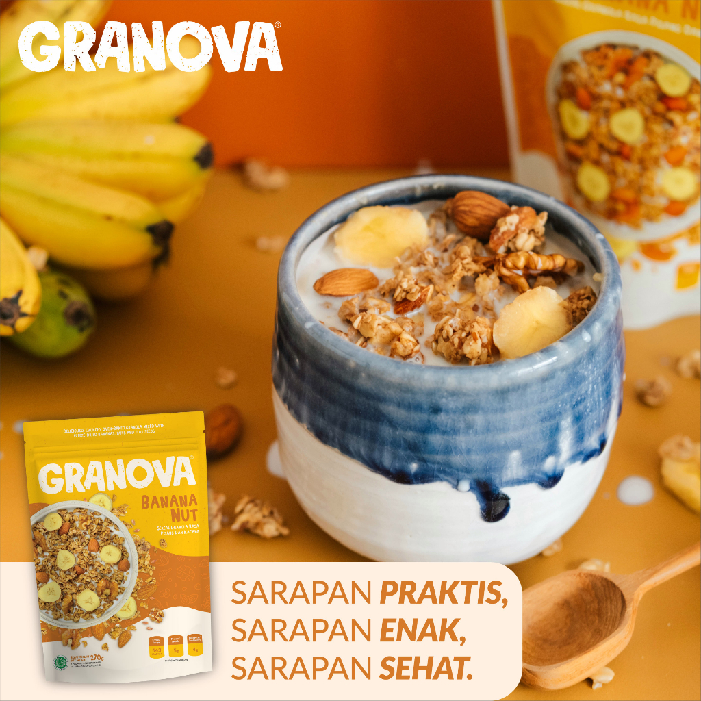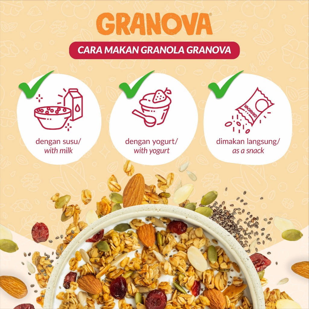 Granova Granola 100gr | Sereal Granola (Honey Almond, Choco Cranberry, Berry White, Banana Walnut) - Sereal, Sarapan Sehat, Halal | Cereal Granola, Healthy Granola, Diet Friendly