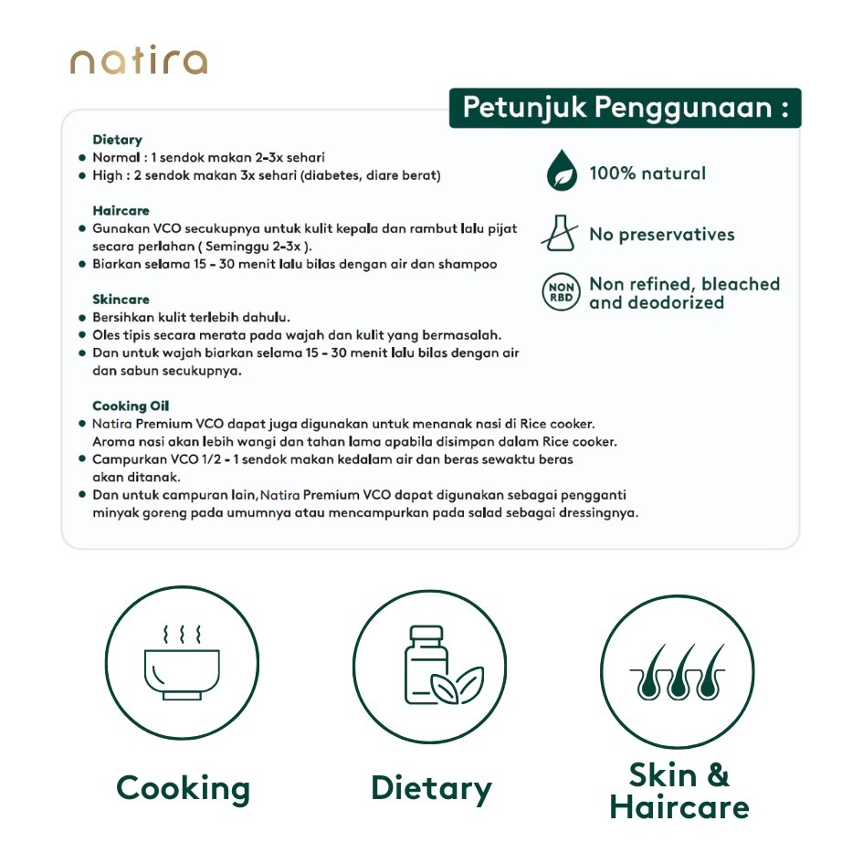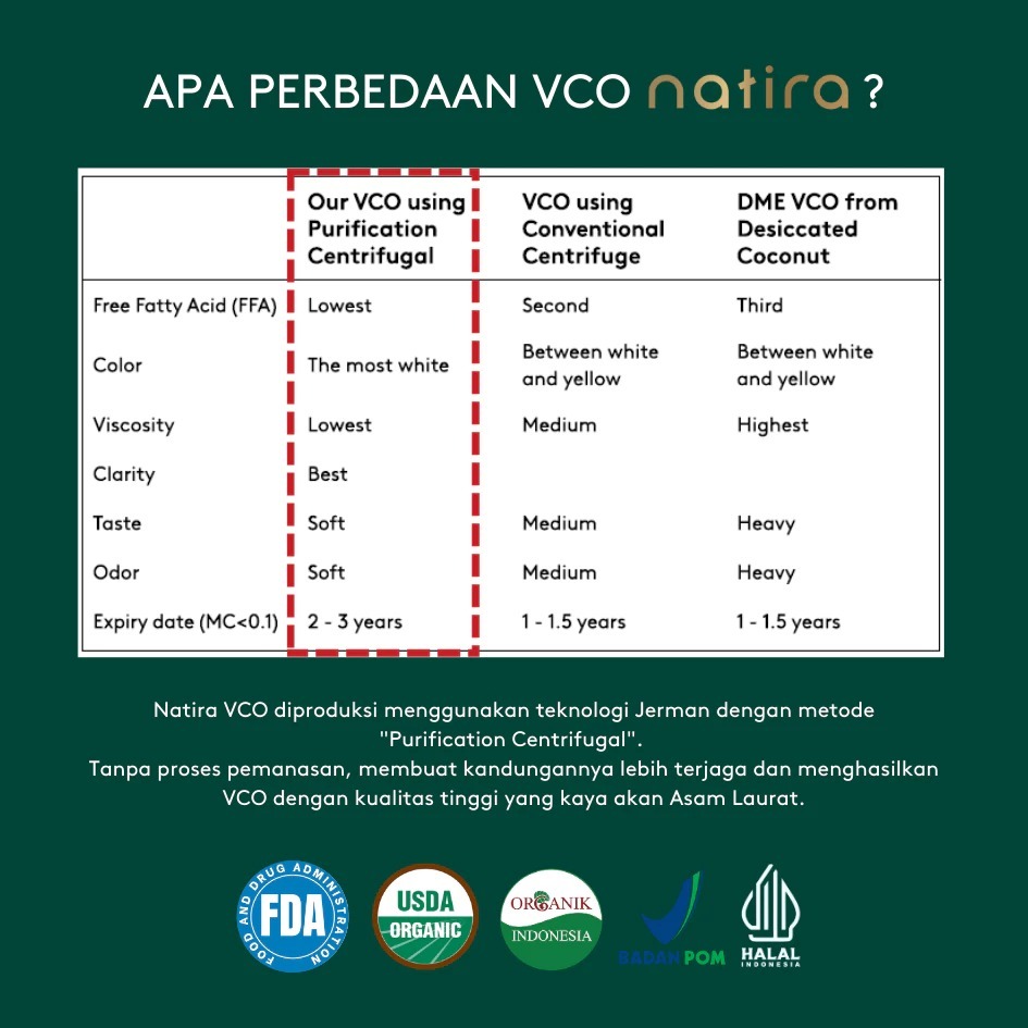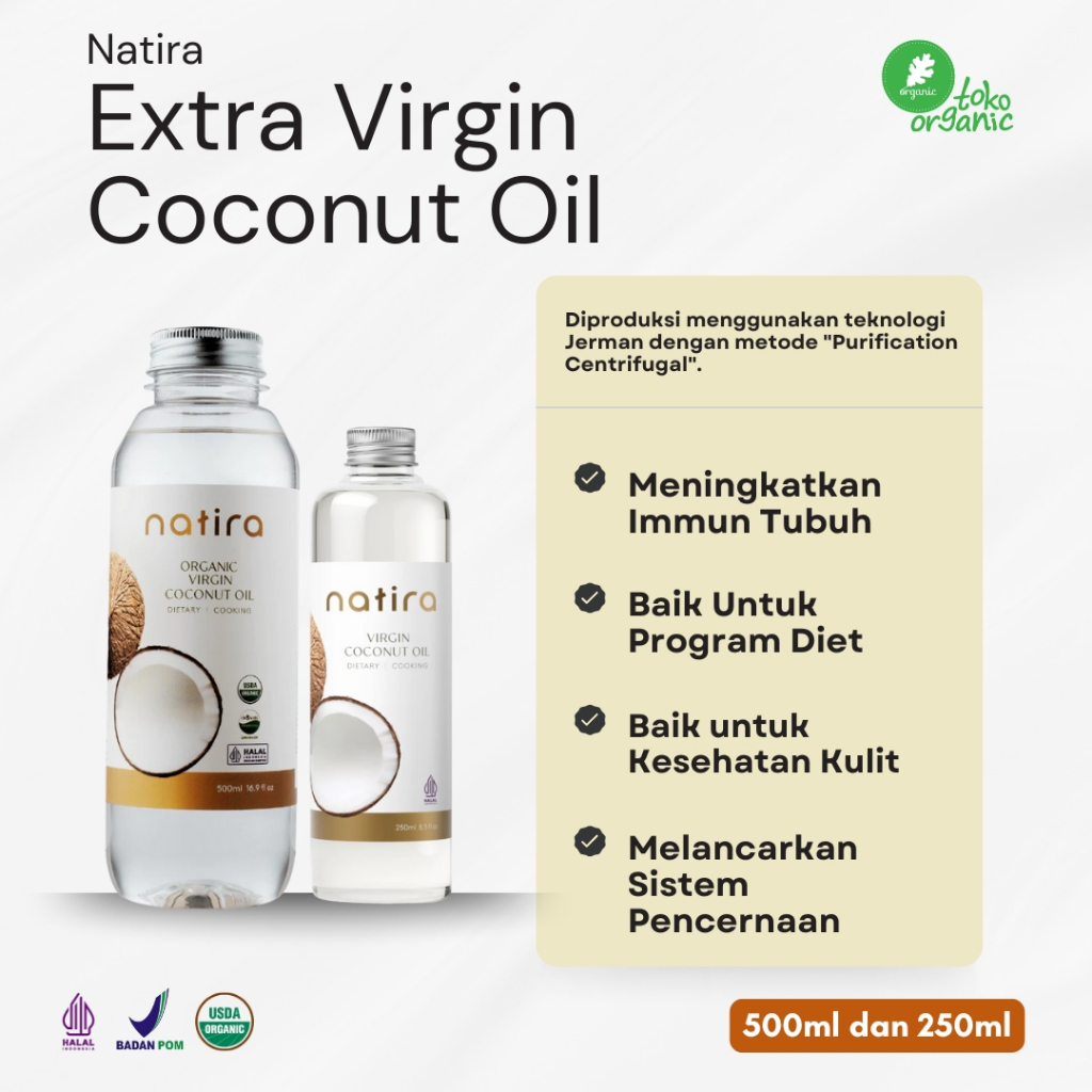Natira Organic Virgin Coconut Oil (500ml dan 250ml) | Premium US Organic Extra Virgin Coconut Oil