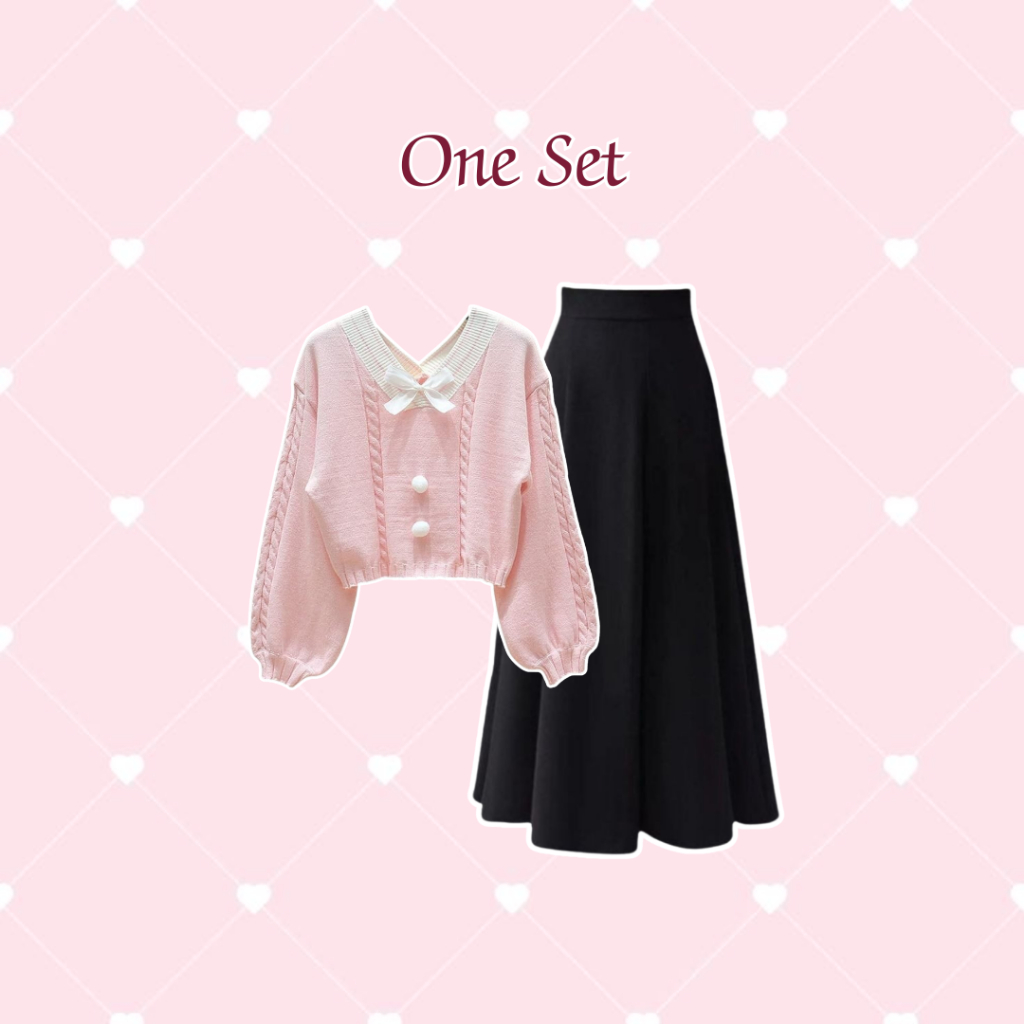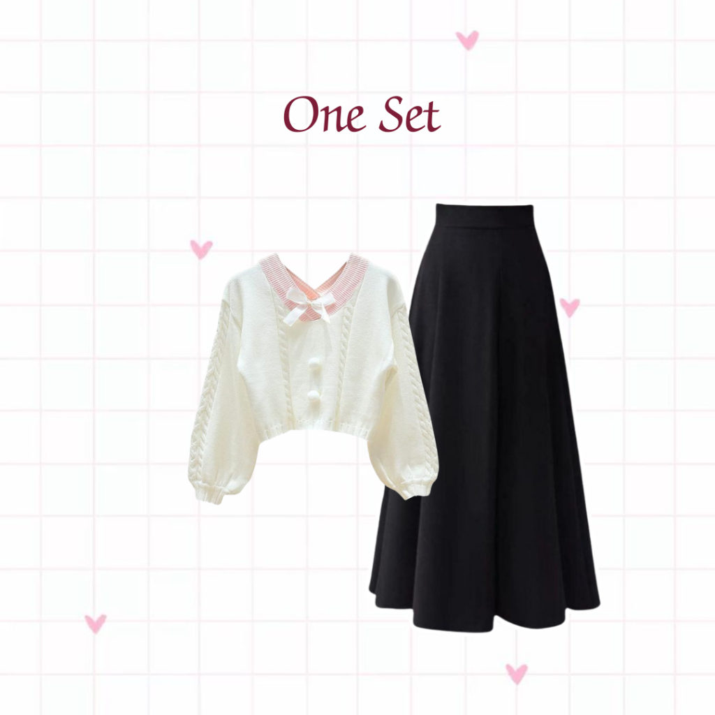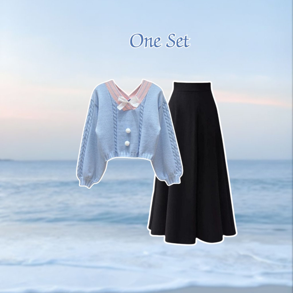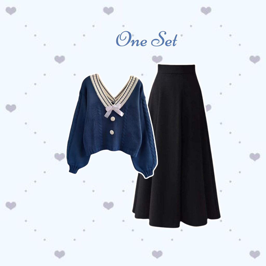 Dreamy OOTD - 3 In 1 Set Hijab Style Outfit Korea One Set Wanita Kekinian OOTD Korean Buat Daily Study Tour Sweater HIjab Skirt Set AD420