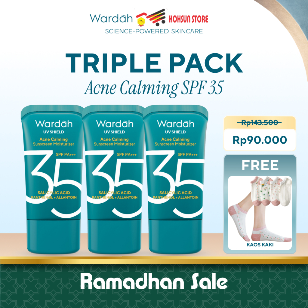 (3 PCS Lebih Hemat) Wardah UV Shield Acne Calming SPF35 PA+++ 35ml - Salicylic Acid Vit B3 + Panthenol