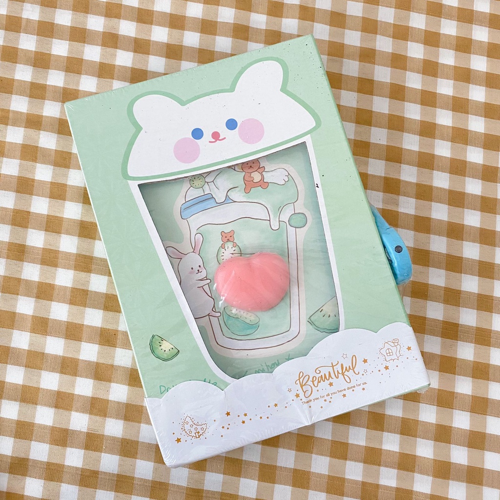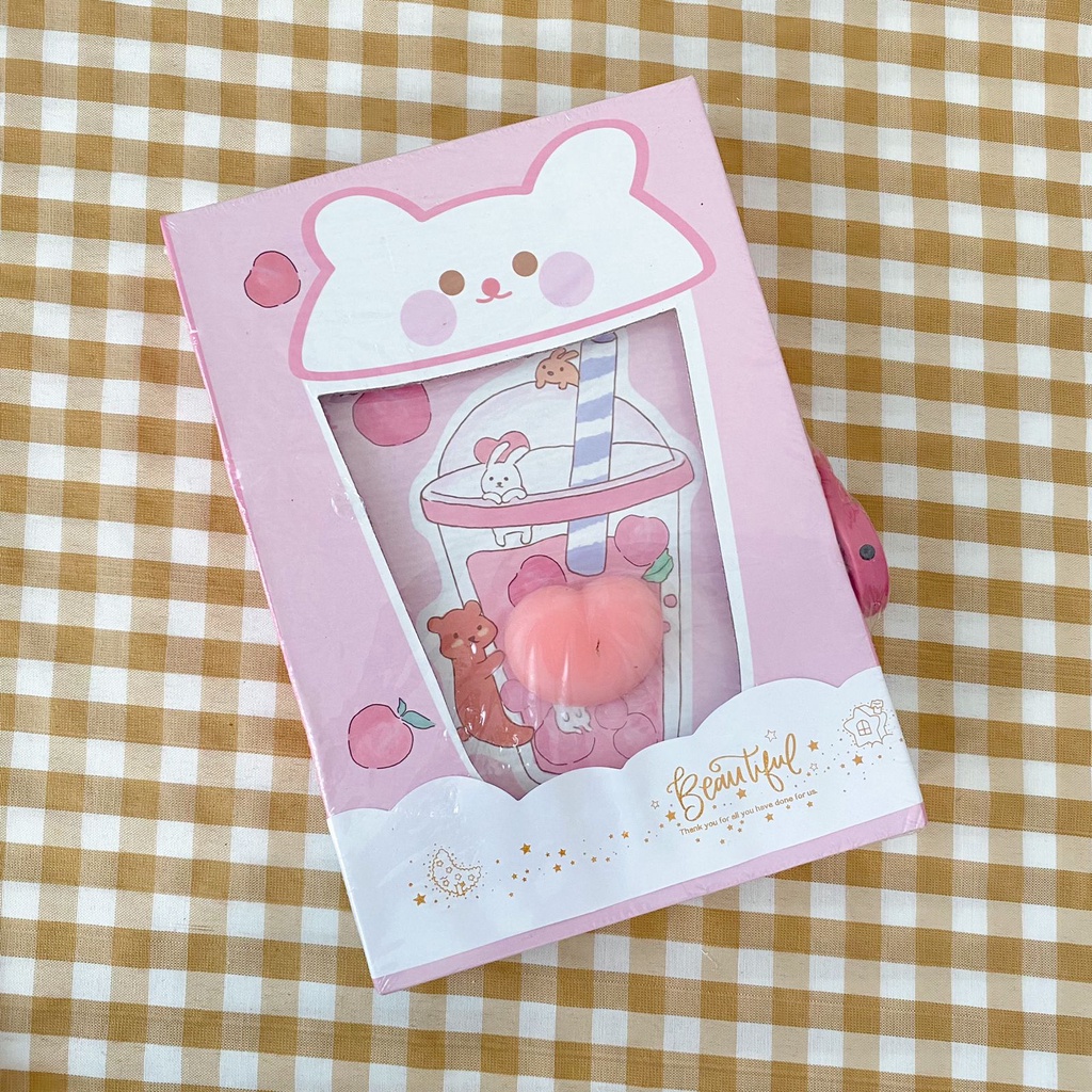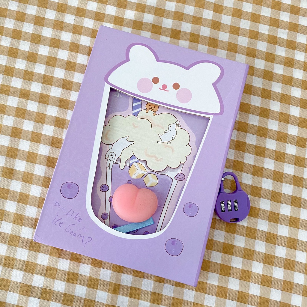 Buku Diary Jurnal Gembok Privasi Surat + Mini Squishy Kertas Motif Cute Minuman Boba Bubble Milk Tea Warna Pastel Lucu Viral Locked Journal Scrapbook Paper Harga Grosir Ready COD