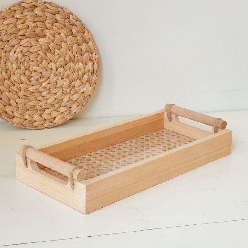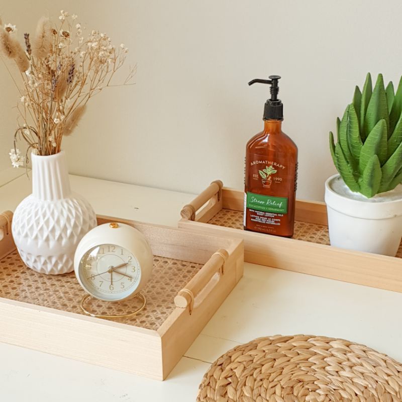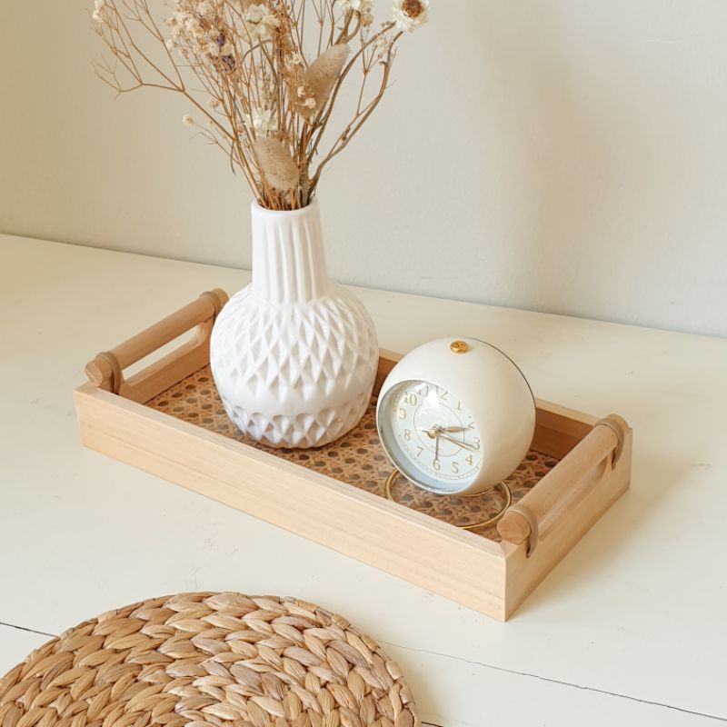 Aesthetic Wooden Rotan Rattan Akrilik Long Tray Nordic Acrylic Nampan Baki Properti Foto