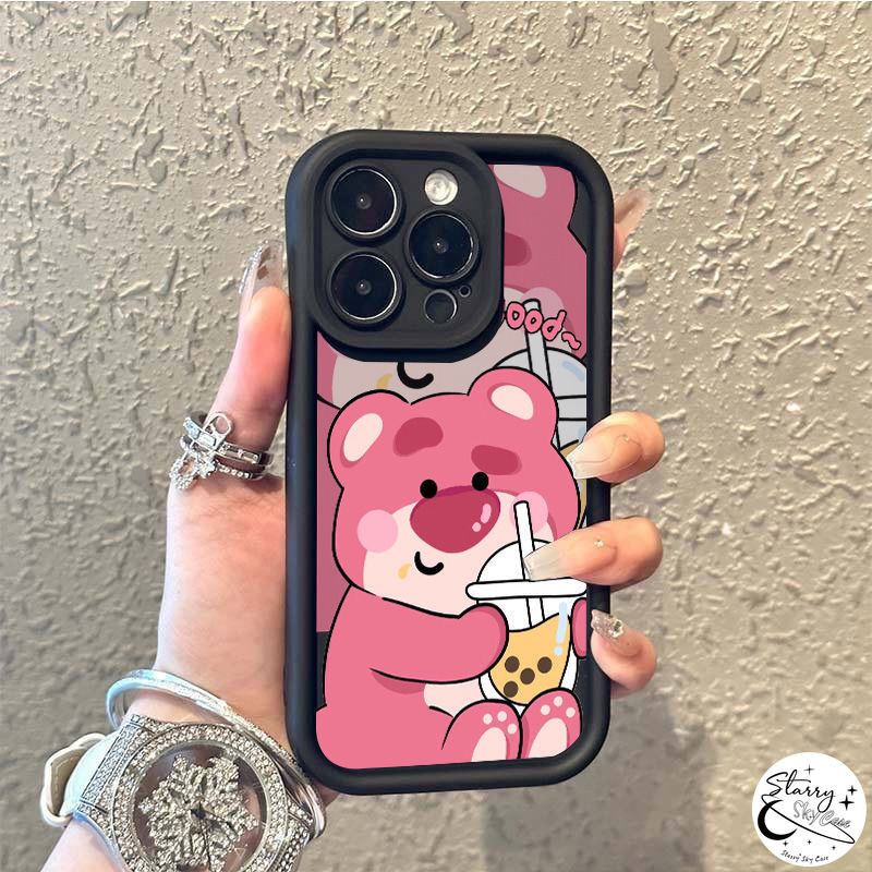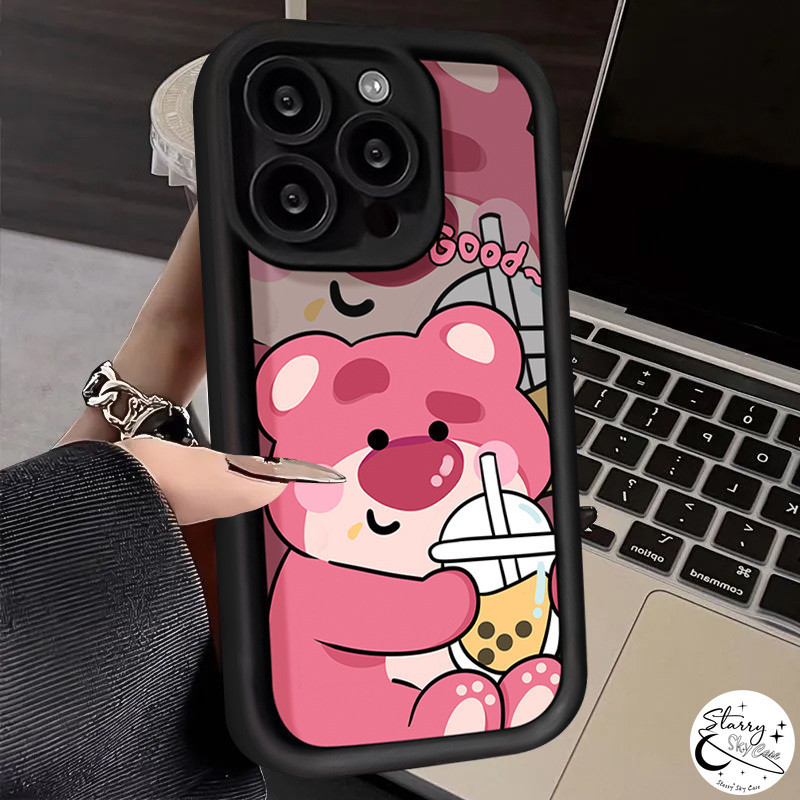 Casing Pasangan Lotso Beruang Stroberi Lucu Kartun Bahagia Teh Susu Modis Untuk Redmi Note 11 12 10 12Pro 8 9 8Pro 10s 11s 11Pro 10Pro Max 12s Redmi 12 12C 9C 9A 11A A1 10A A2 9C NFC 10 POCO M3 Pro X3 GT Angel Eyes kasus lembut