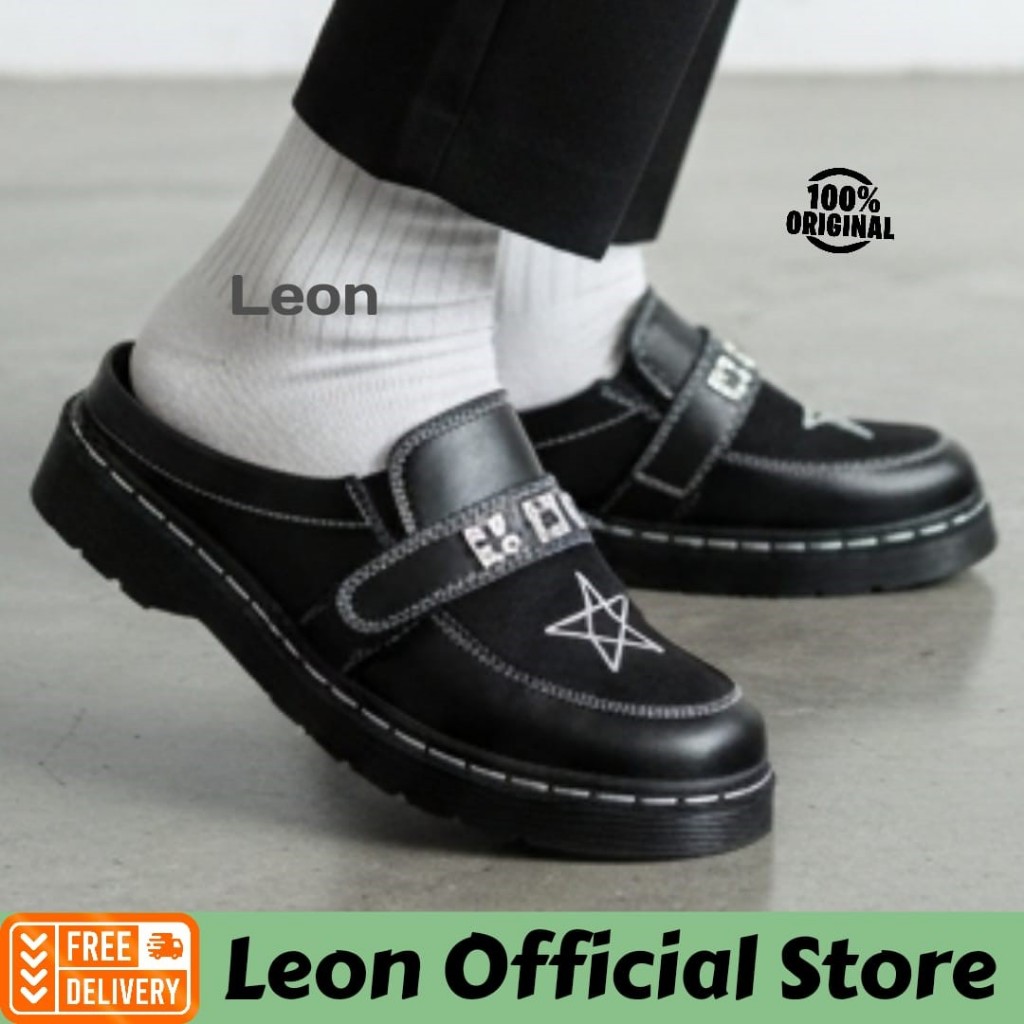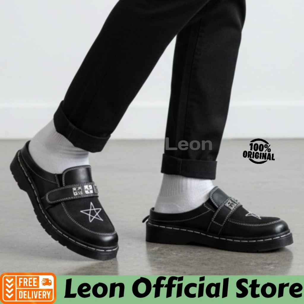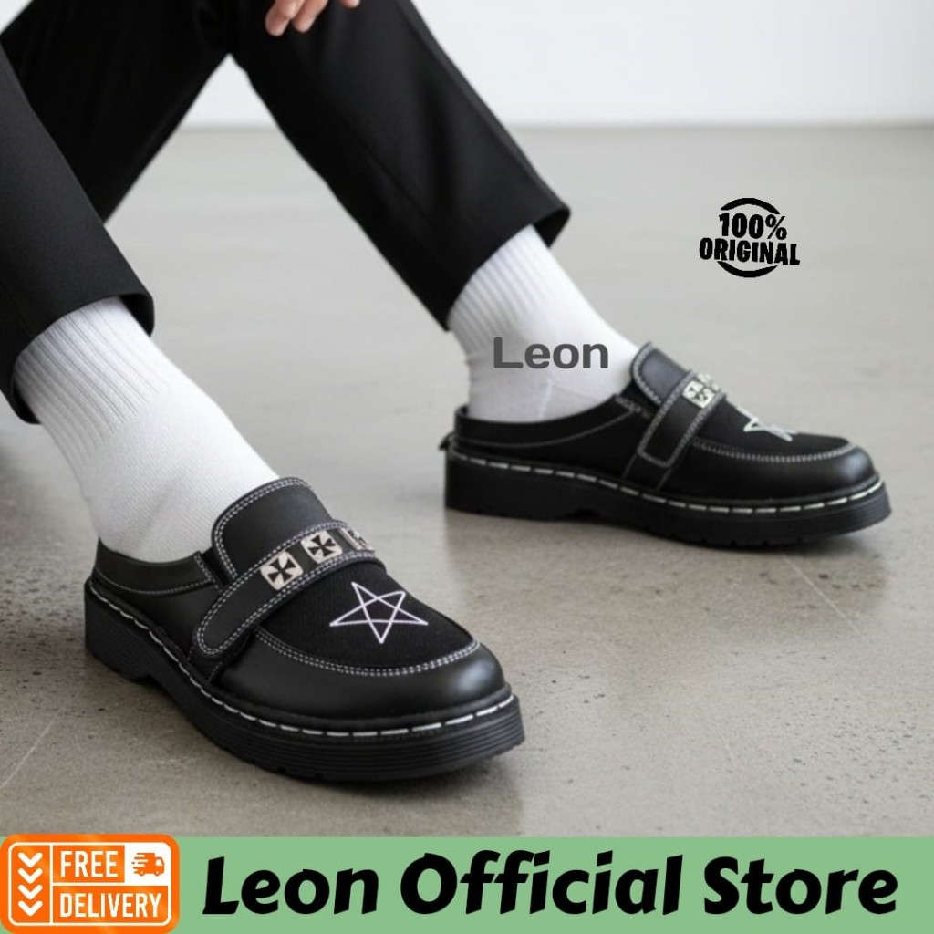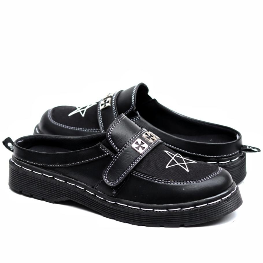 Sandal Selop Casual Pria Hitam Docmart Bintang Spike Slip On Slide Formal Kulit PU Size 39 - 43