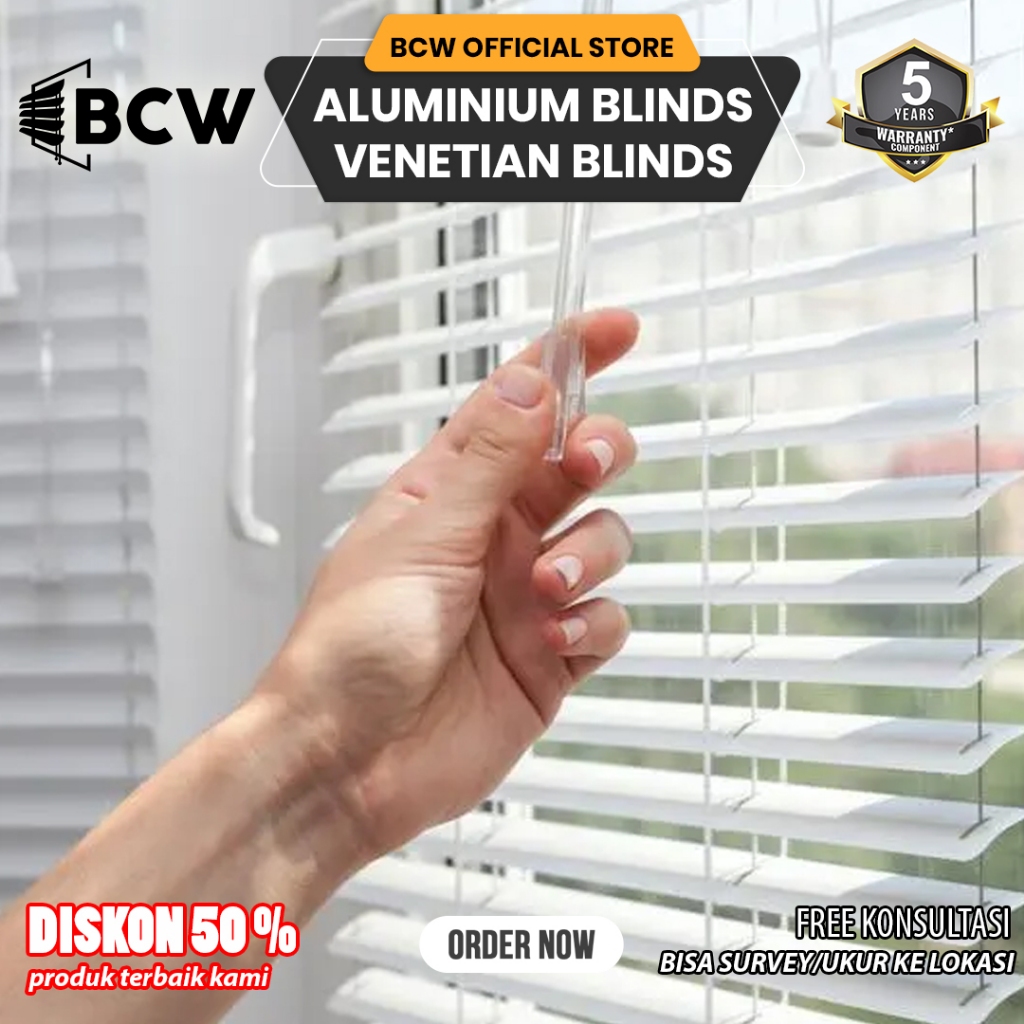 BCW - Alumunium Venetian Blinds - Custom Ukuran - Venetian Blind - Horizontal Blind / Kerai Aluminium - Tirai Jendela - Tirai Jendela Gulung/Kerai - Tirai Minimalis - Gorden Jendela - Tirai Modern - Gorden Minimalis - Tirai Gulung - Gorden Rumah