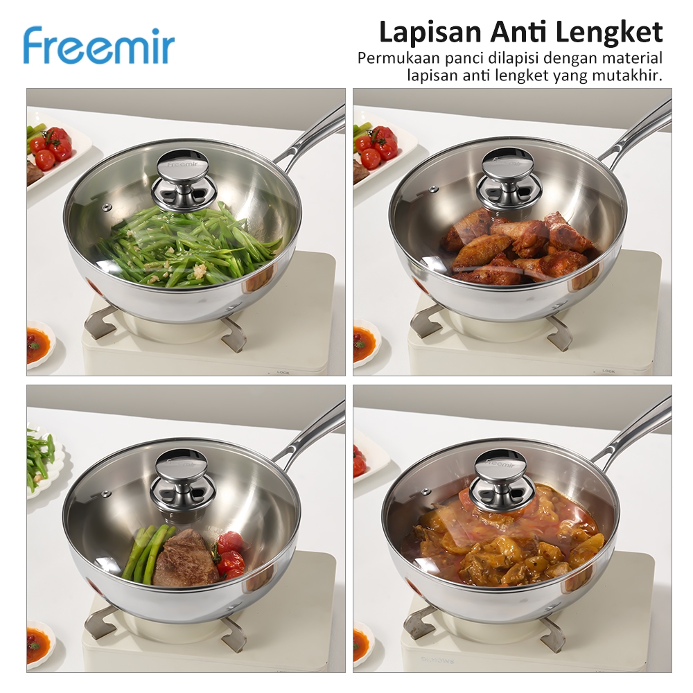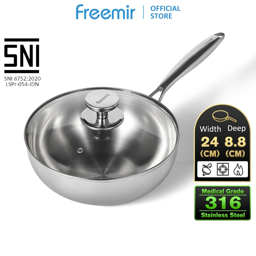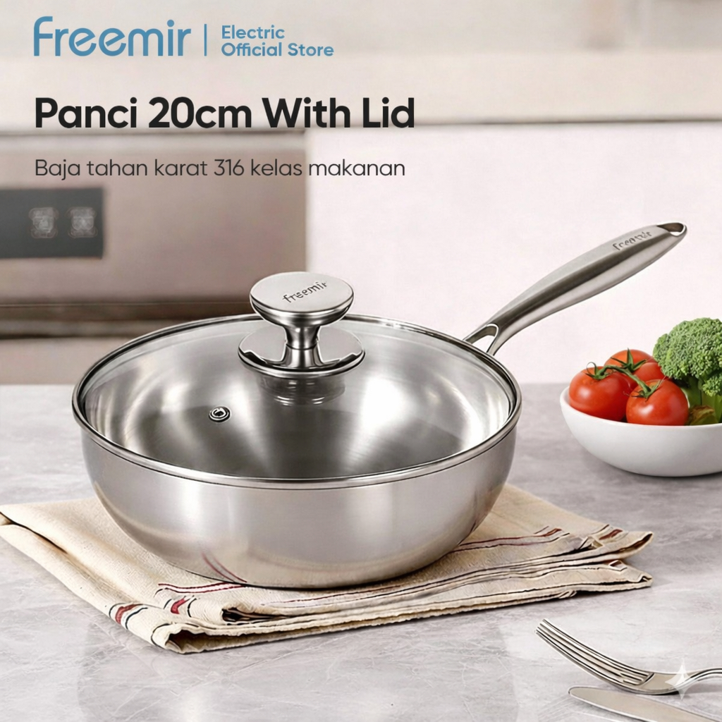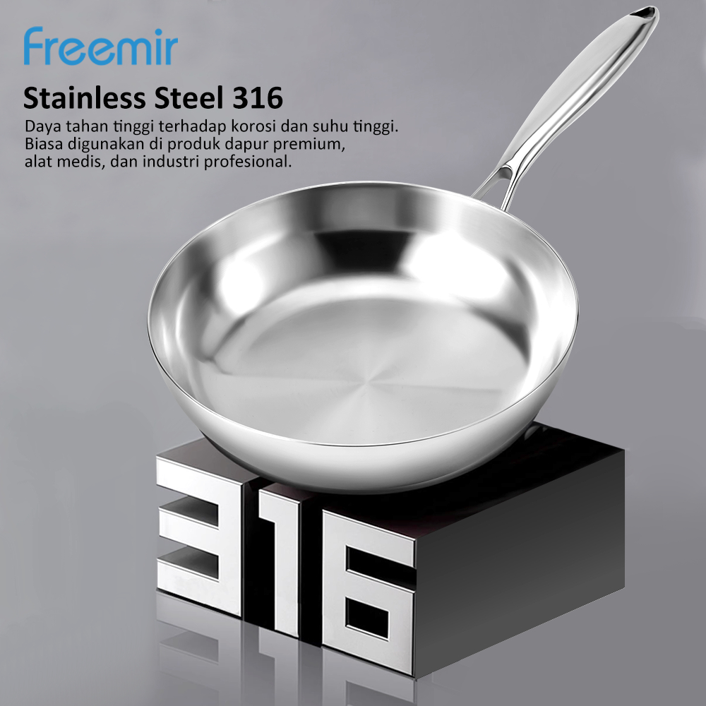 [Promo] freemir Wajan Panci Baja 3 Lapis Anti Karat Serbaguna 20cm Stainless Steel 316 0-Coating