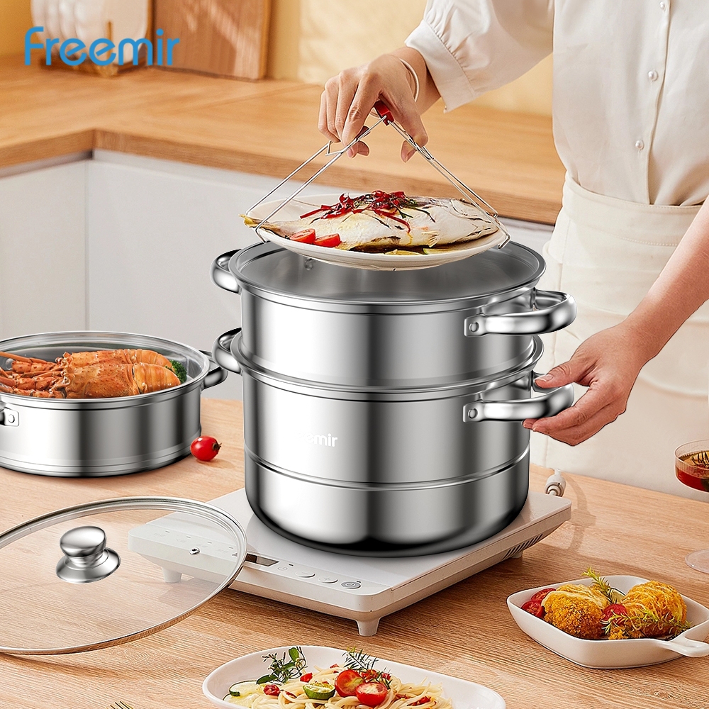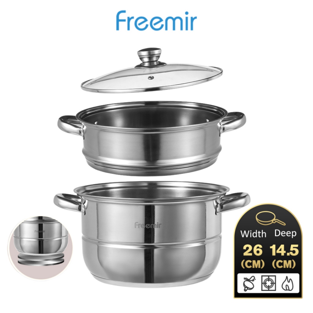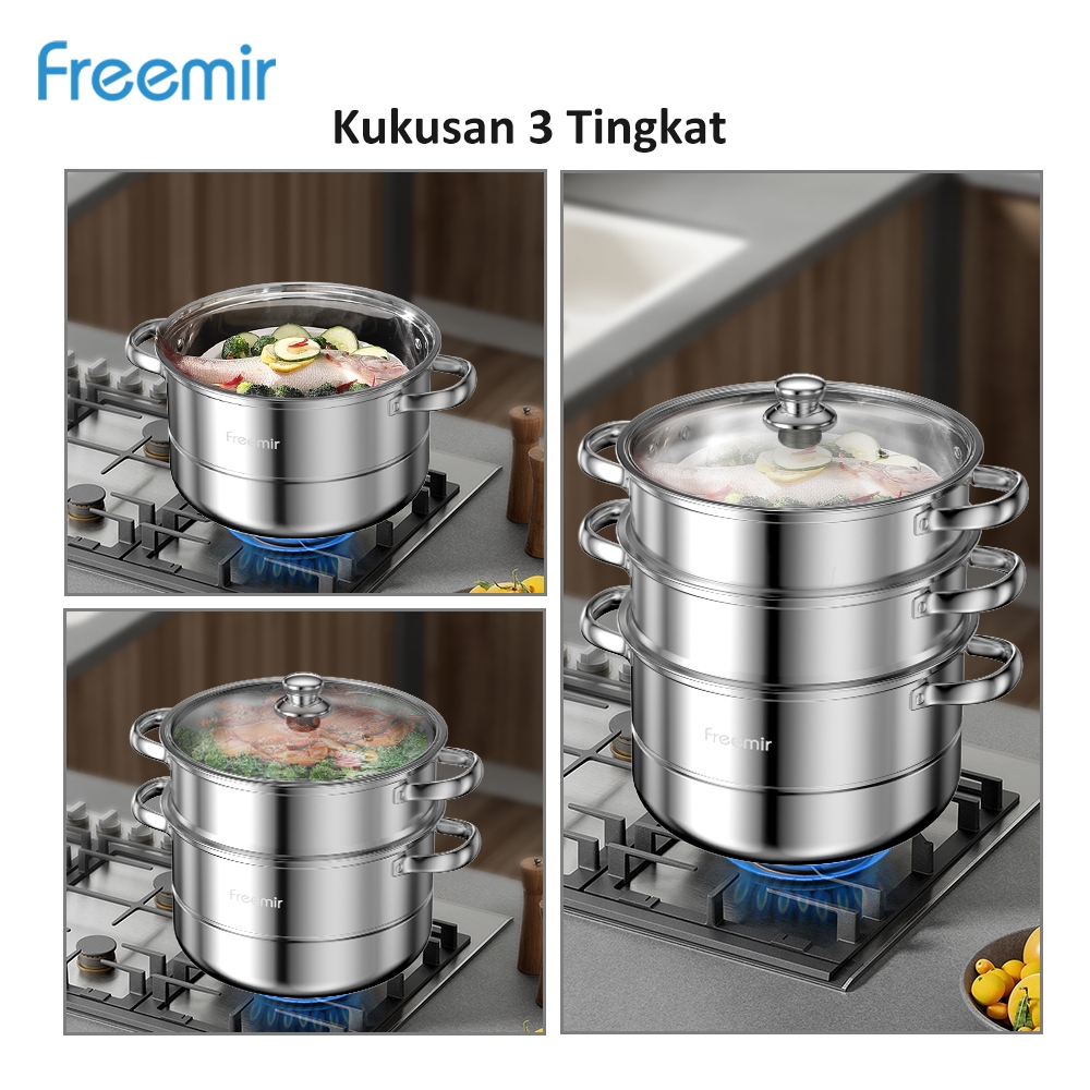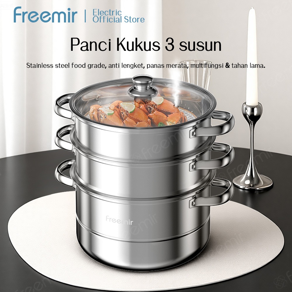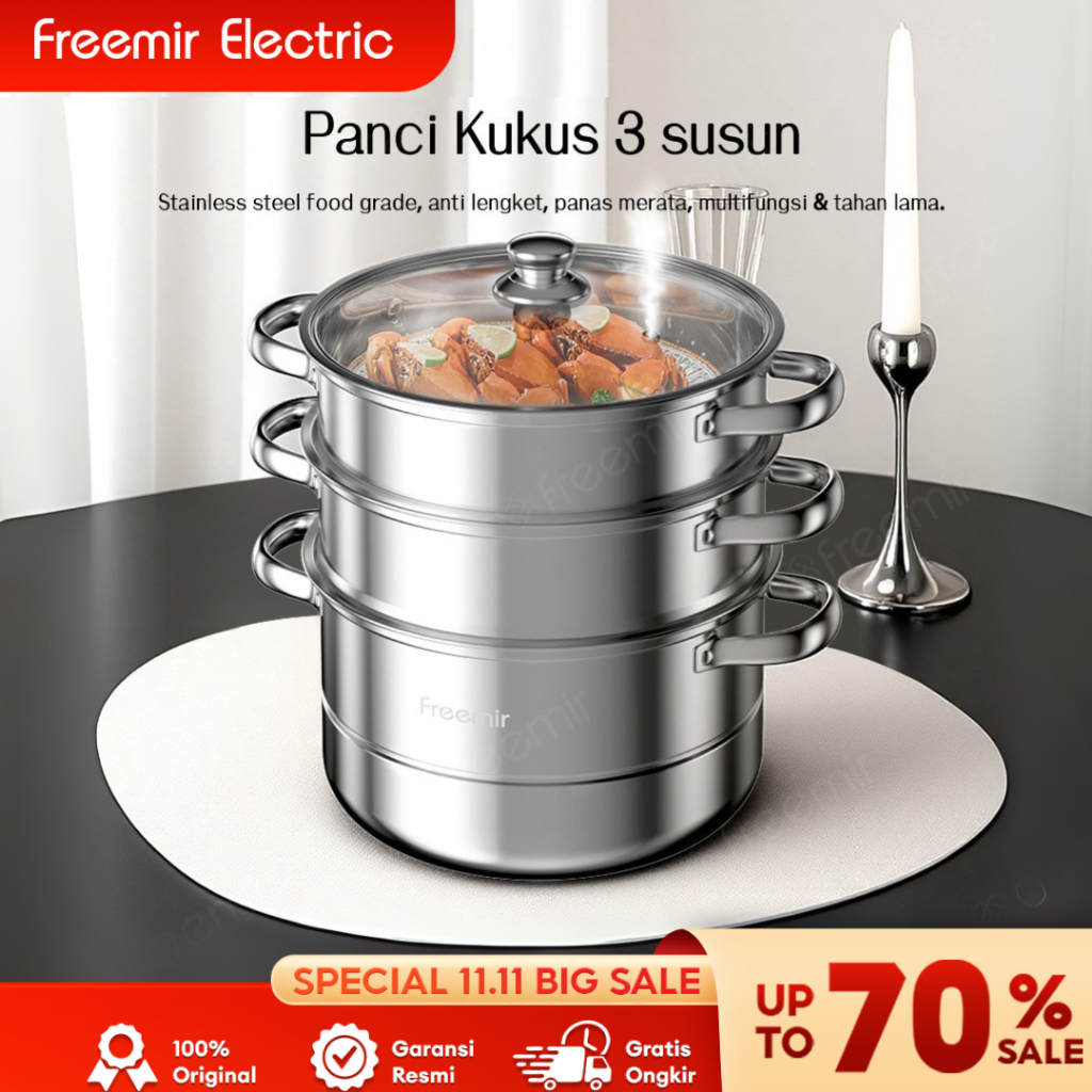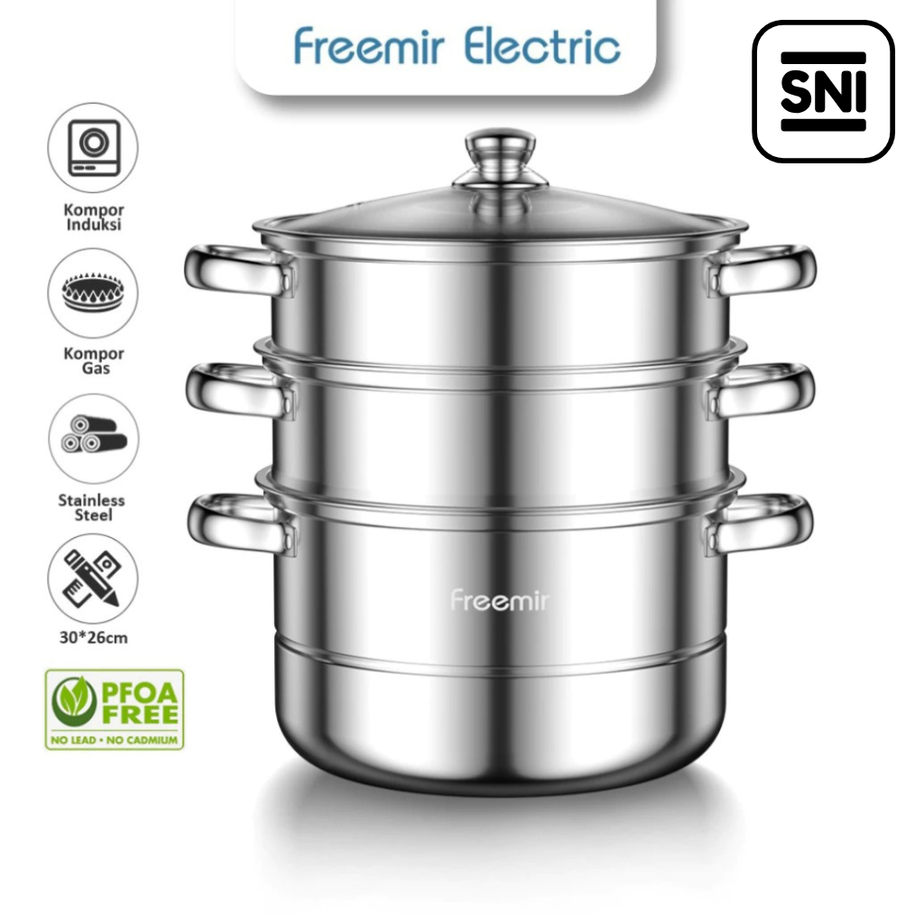 [SALE] freemir electric Langseng Stainless Steel Kukus Dimsum Tutup Kaca Tingkat 100% Garansi