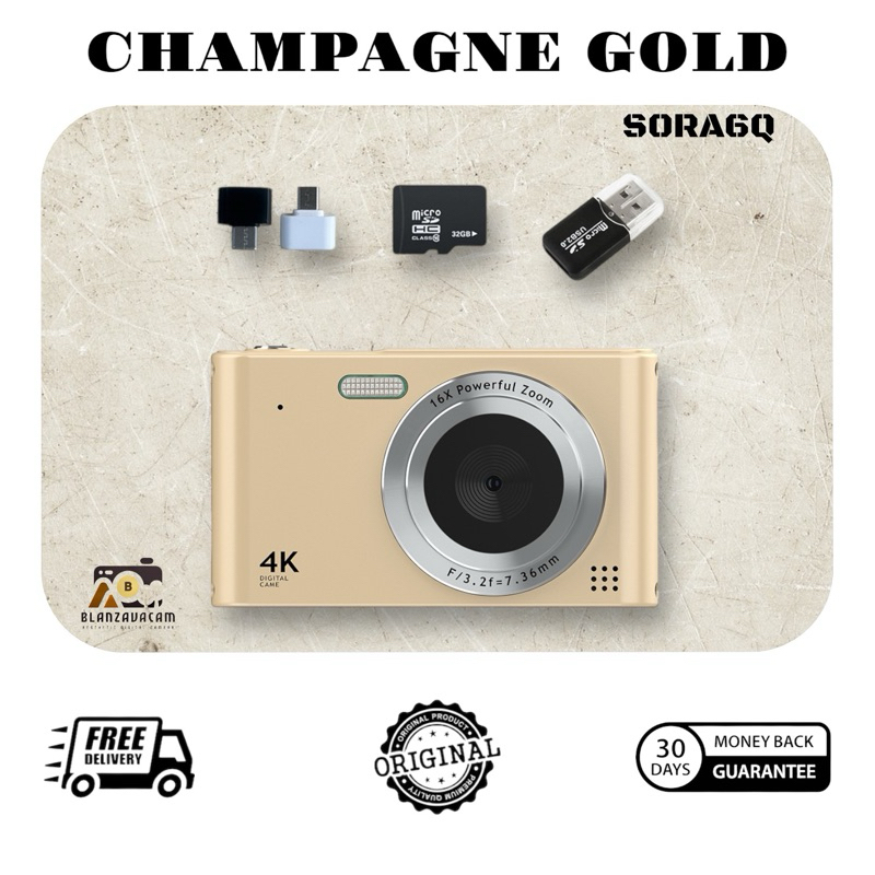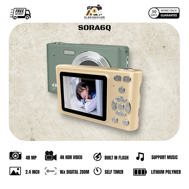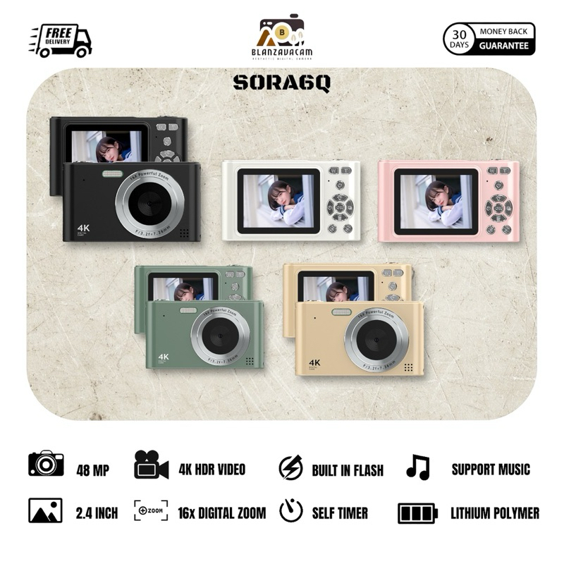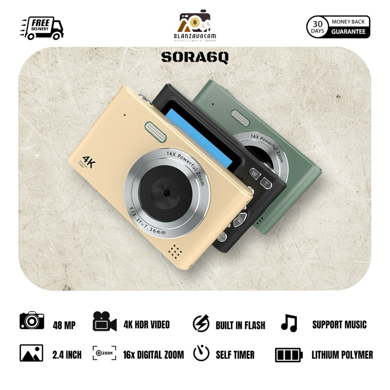 BLANZAVA CAM SORA6Q 4K Digital Camera Original Kamera 48MP 16X Digital Zoom Anti Shake Auto Focus