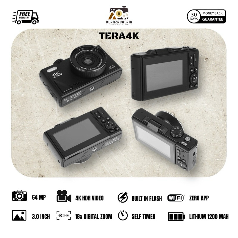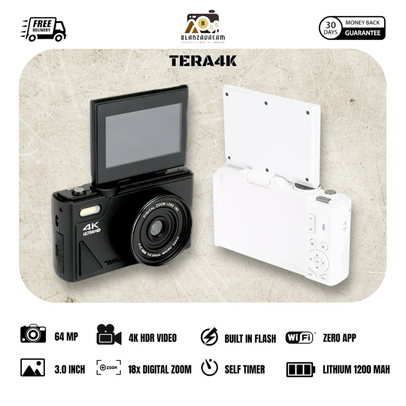 BLANZAVA CAM TERA4K 4K Digital Camera Original Kamera 64MP Flip Screen 18X Digital Zoom WiFi Support