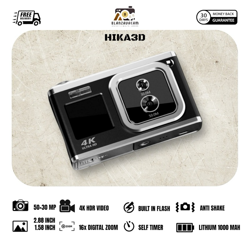 BLANZAVA CAM HIKA3D 4K Digital Camera Original Kamera 50MP+30MP Dual Lenses Screen 16X Digital Zoom