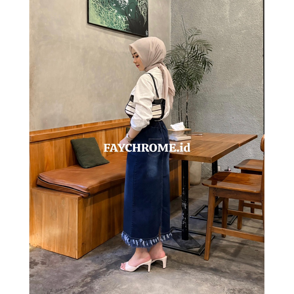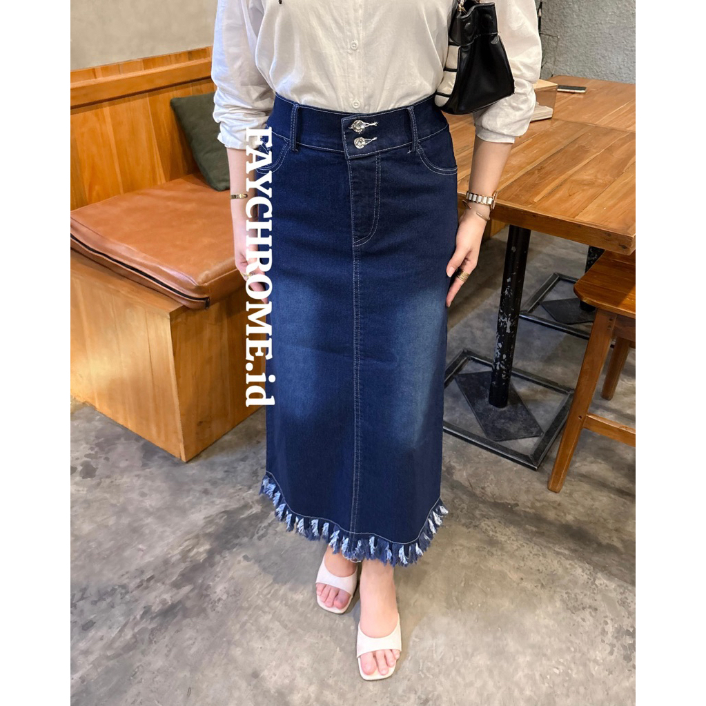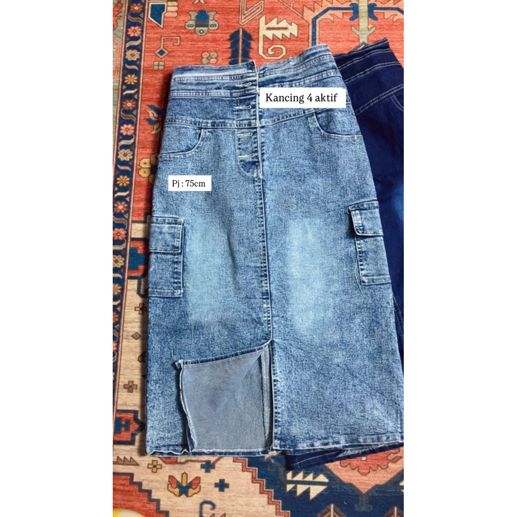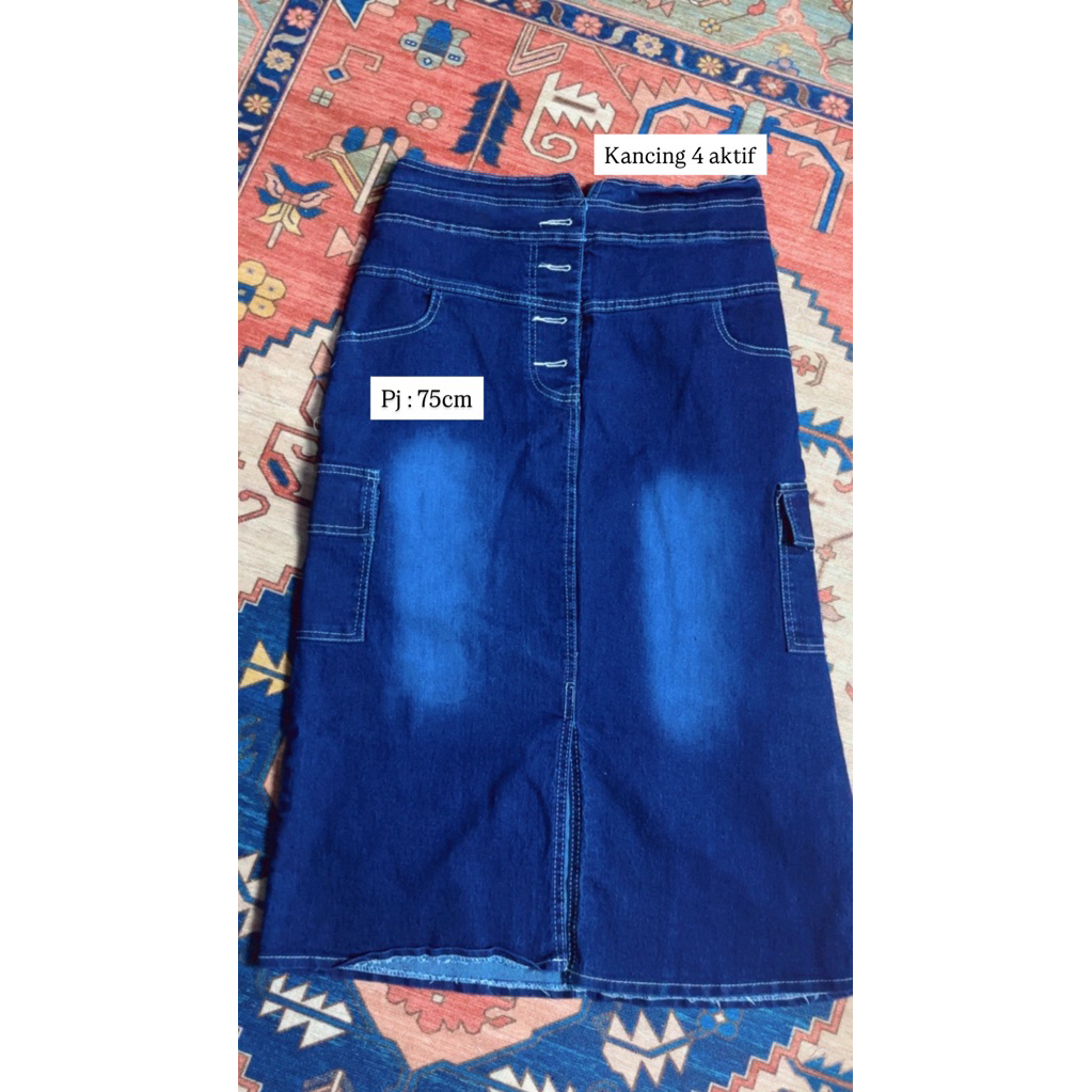 Skirt Denim Vintage Midi Skirt Jeans Rawis Rumbai A-line Kancing 2