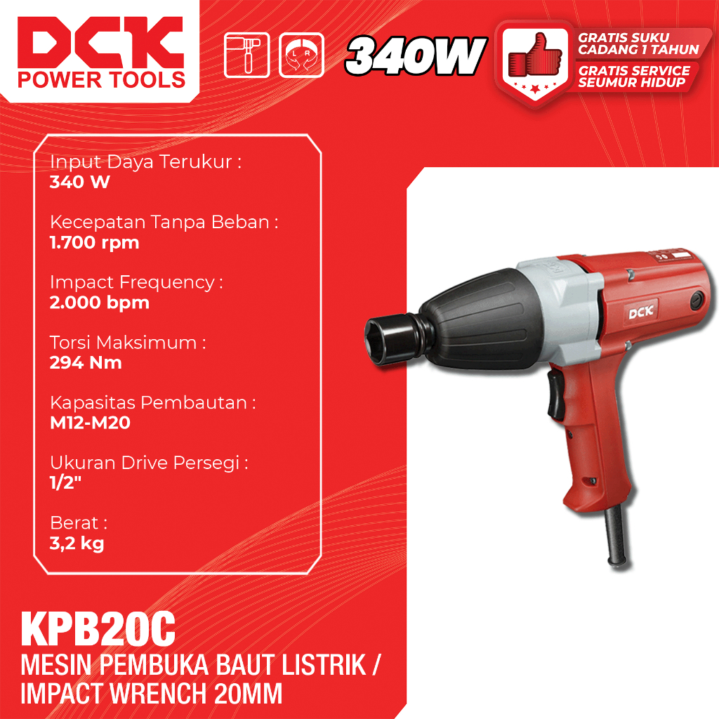 DCK KPB20C Mesin Pembuka Baut Listrik / Impact Wrench 20mm