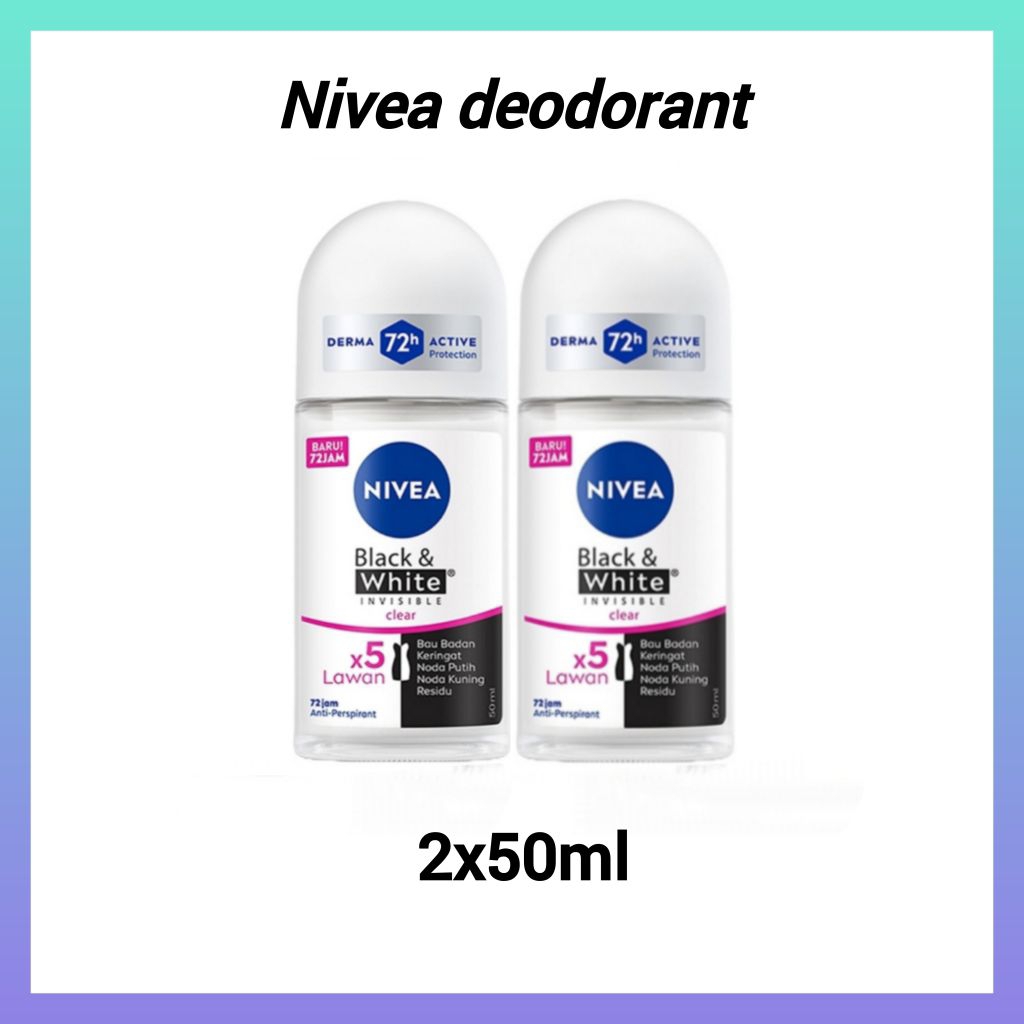 (PAKET HEMAT ISI 2) Nivea Deodorant Roll On Black And White Invisible Clear 2x50ml