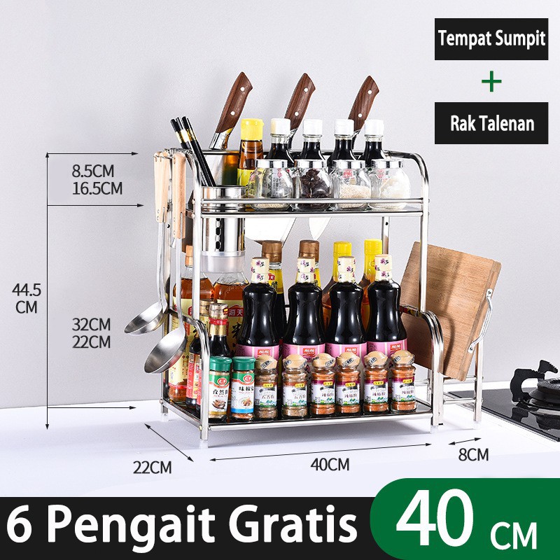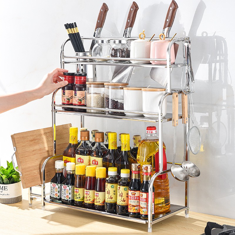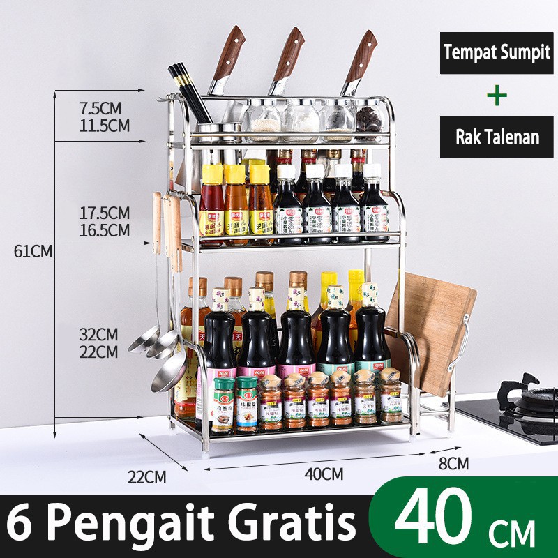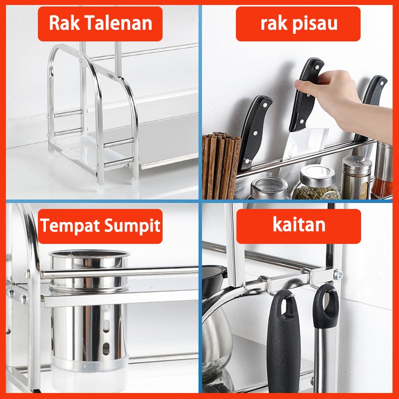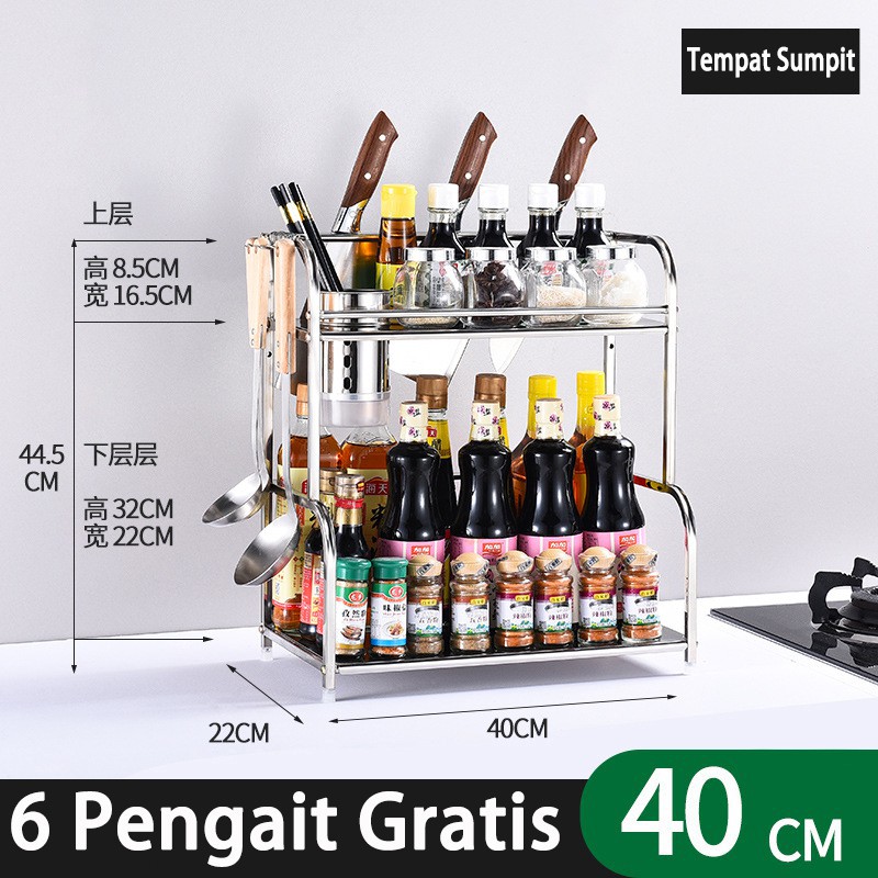 Rak bumbu dapur stainless rak pisau bertingkat tempat penyimpanan minyak garam sambal cuka Meja Makan Serbaguna 3 & 2 Susun Rak Serba Serbi serbaguna