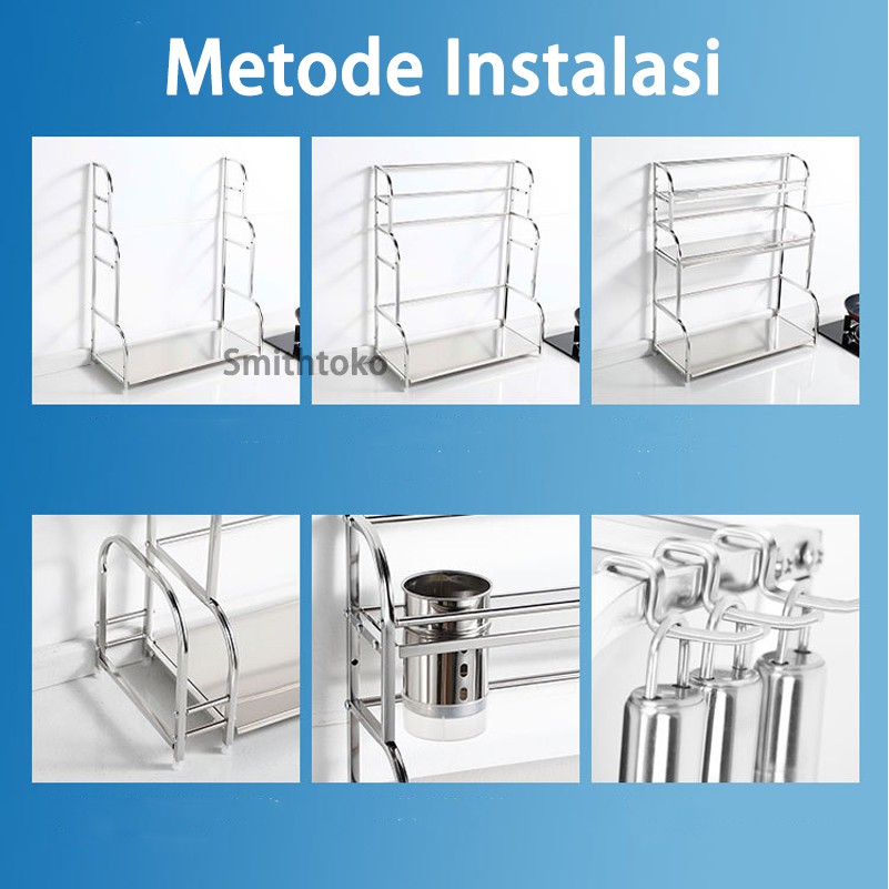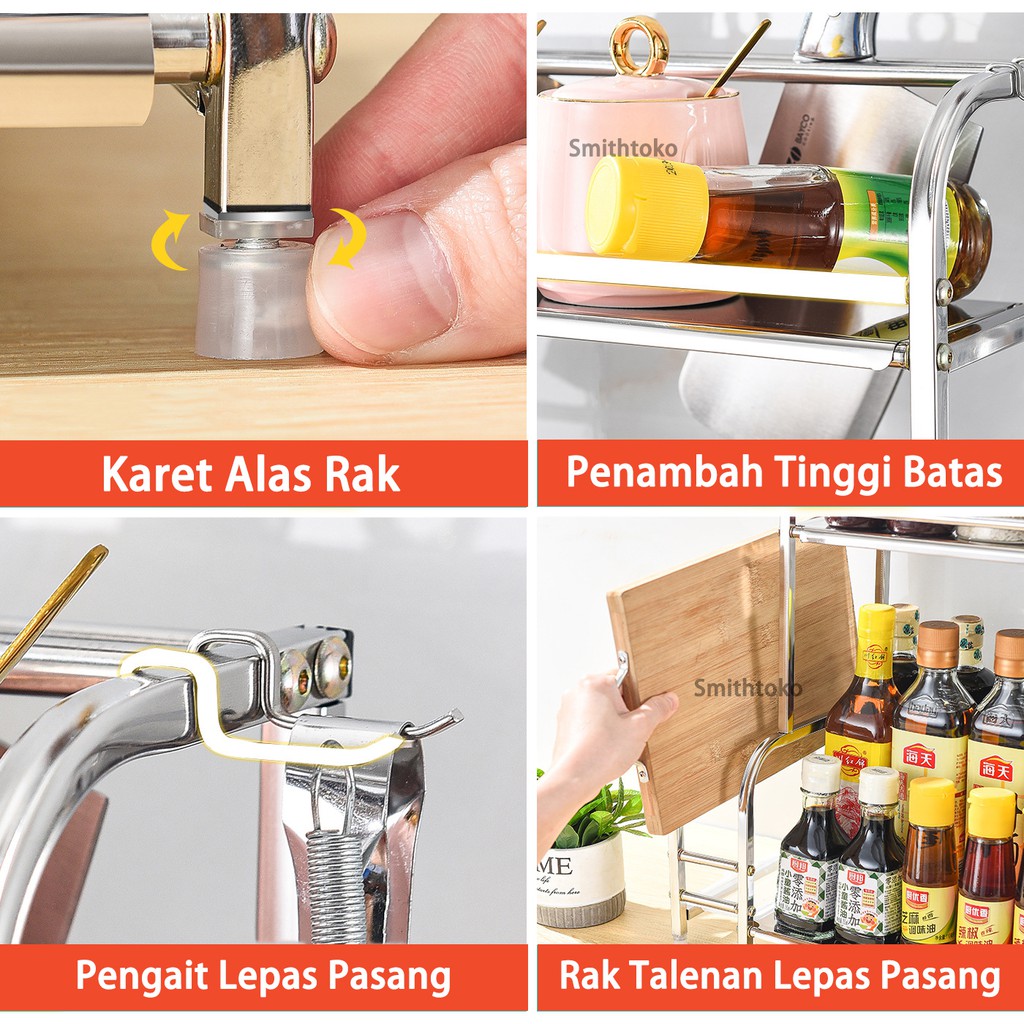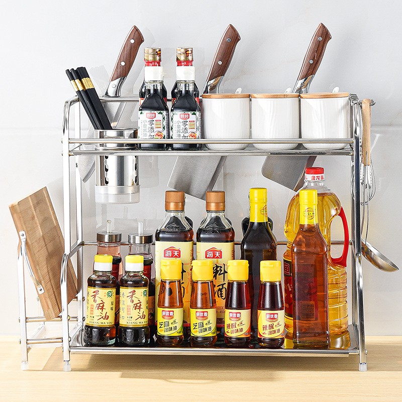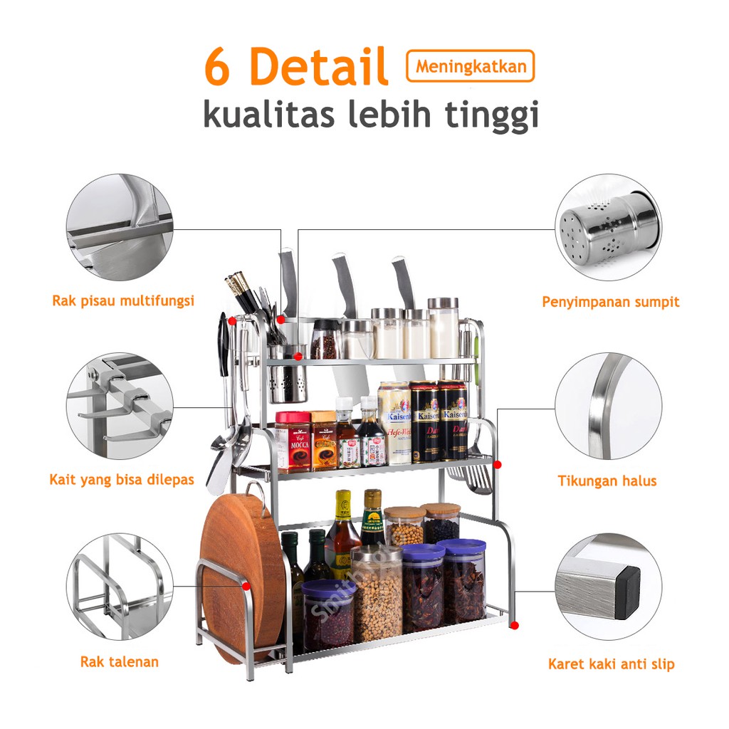 Rak bumbu dapur stainless rak pisau bertingkat tempat penyimpanan minyak garam sambal cuka Meja Makan Serbaguna 3 & 2 Susun Rak Serba Serbi serbaguna