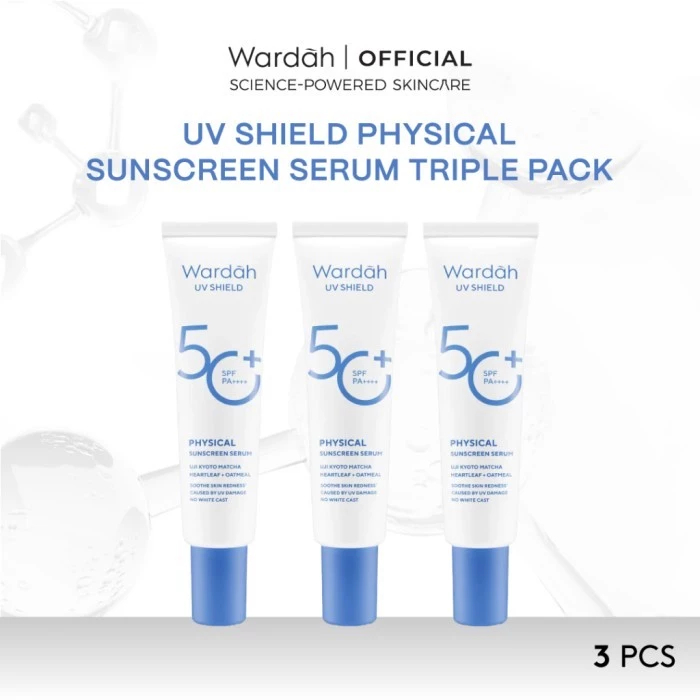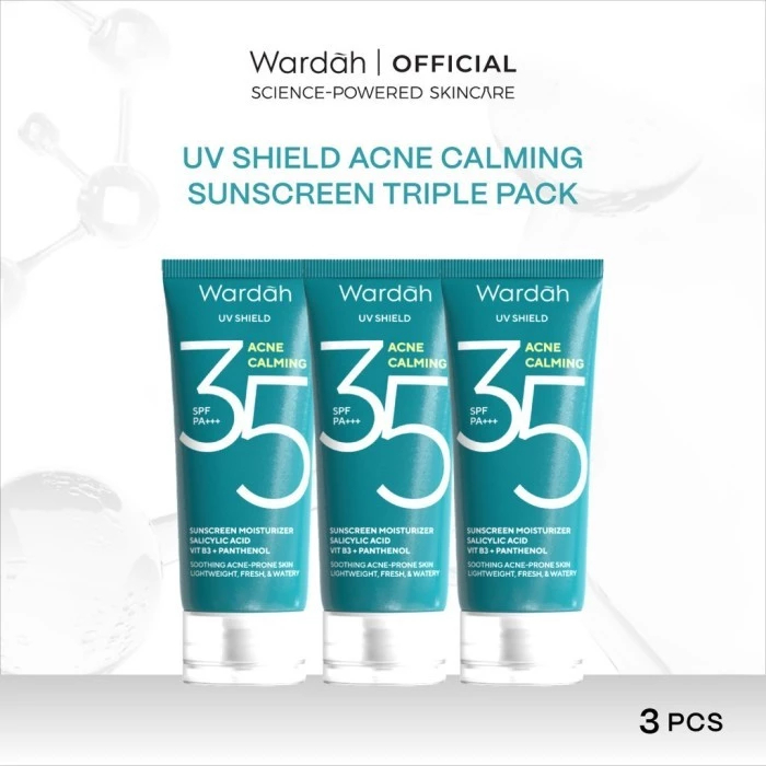 [3 PCS] [TRIPLE PACK] WARDAH UV SHIELD SUNSCREEN SPF 35 SPF 50 - Airy Smooth, Essential Gel, Acne Calming, Aqua Fresh, Tone Up, Physical