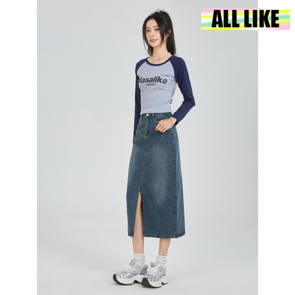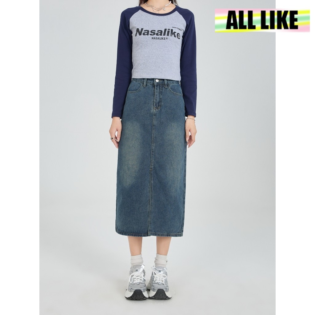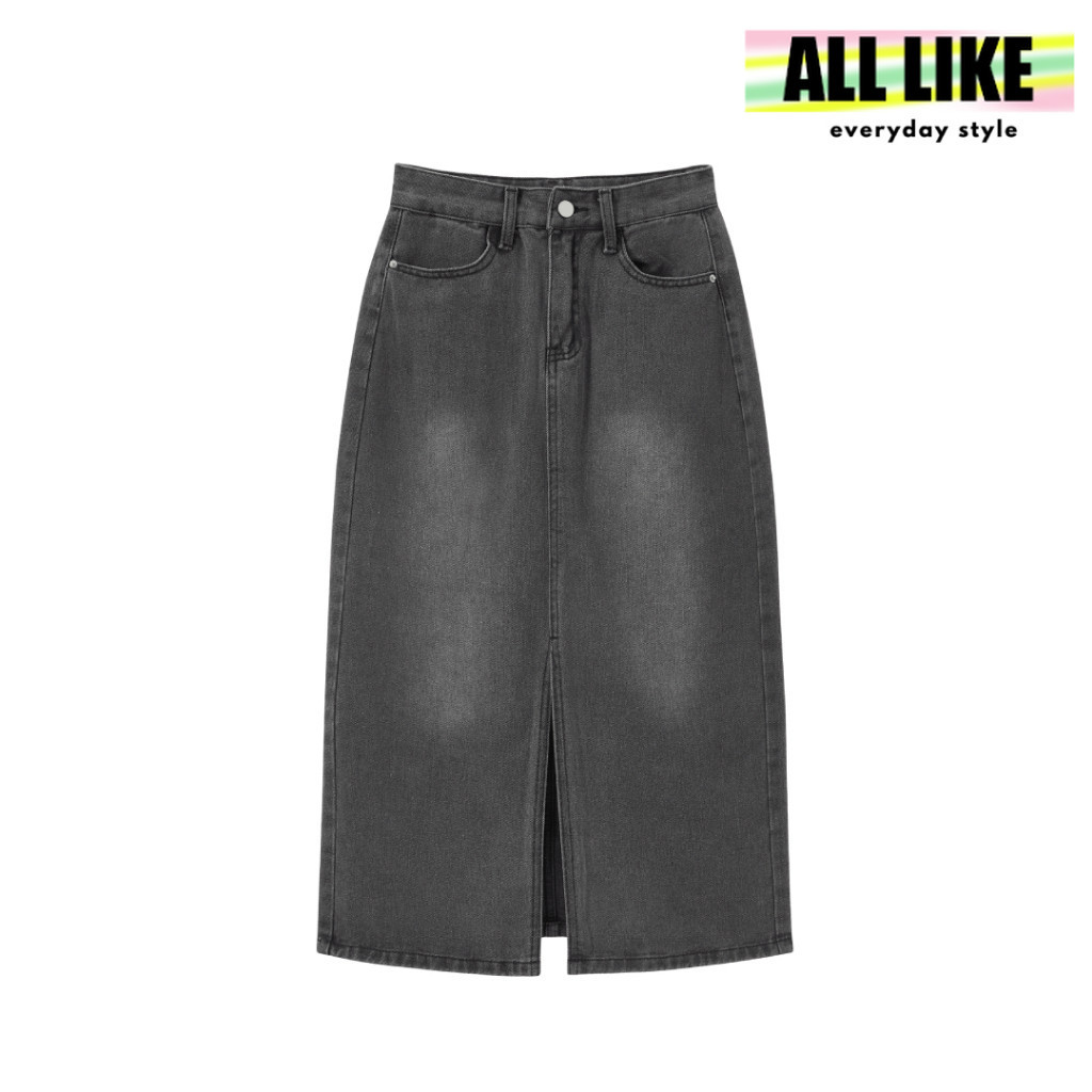 【All Like】Rok Wanita 3/4 Jeans Bahan Denim Korean Style / Rok Midi Style A-Libe Split Tengah / Rok Wanita dengan Pinggang Tinggi Highwaist Modern Style