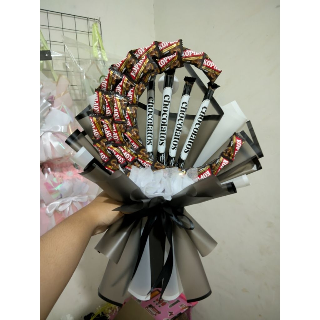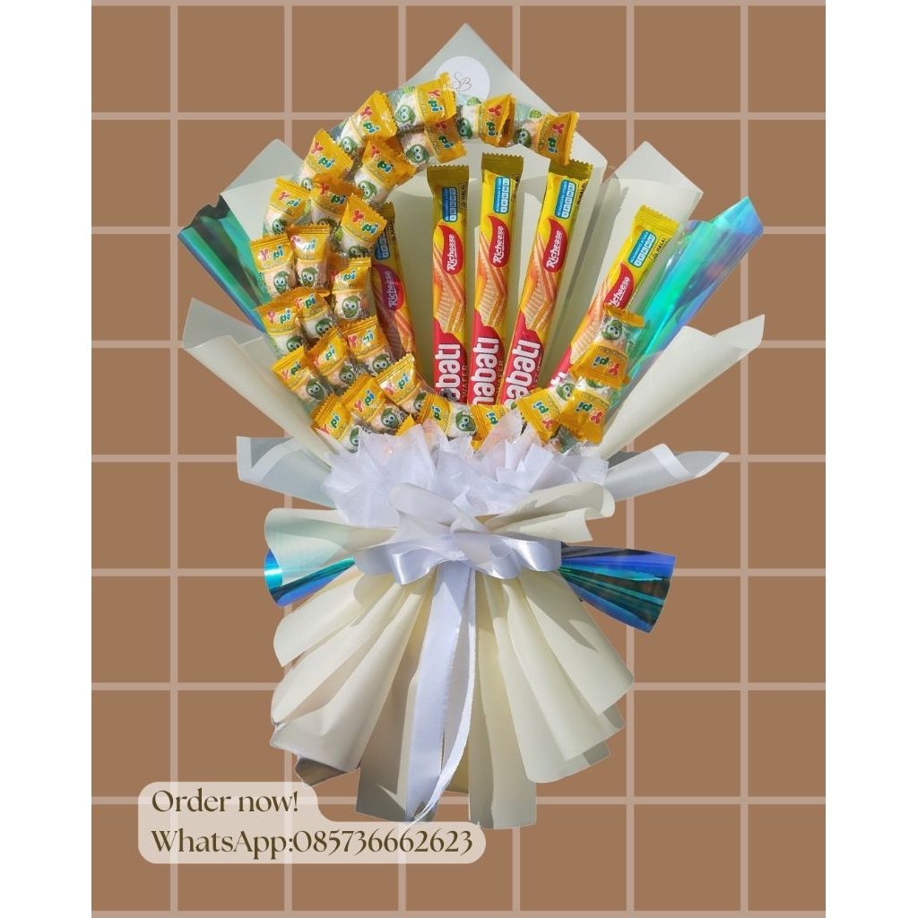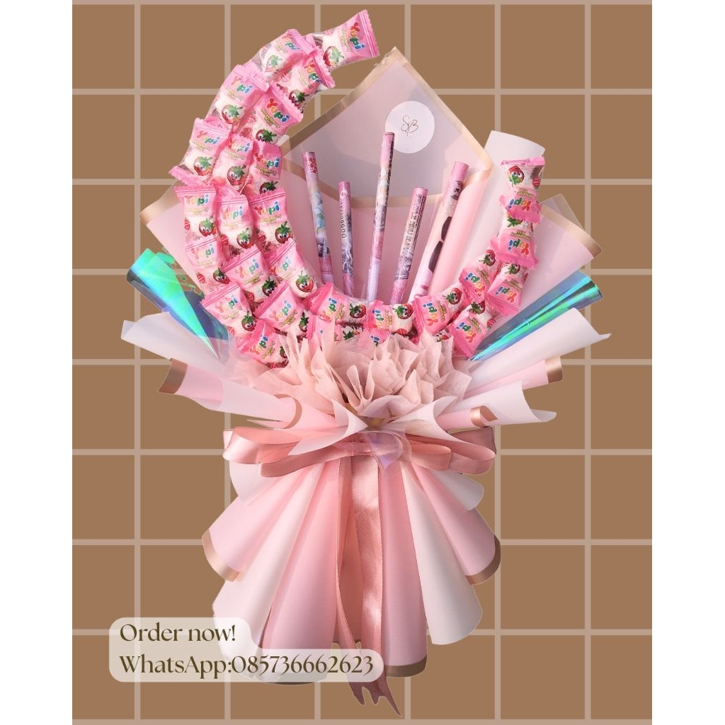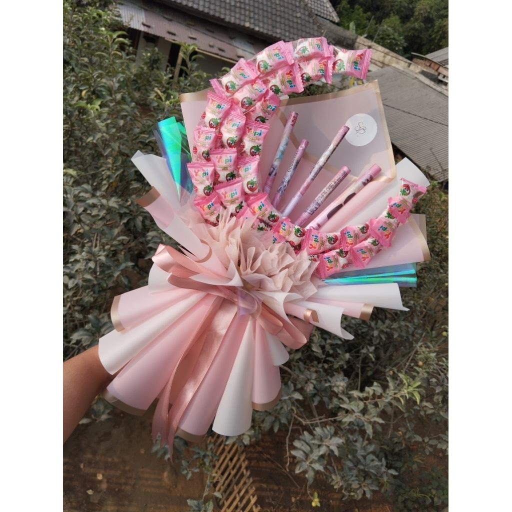 Bouquet Bulan Sabit Snack & Money Korean Style – Buket Bulan Aesthetic (Bisa Custom Snack/Uang)