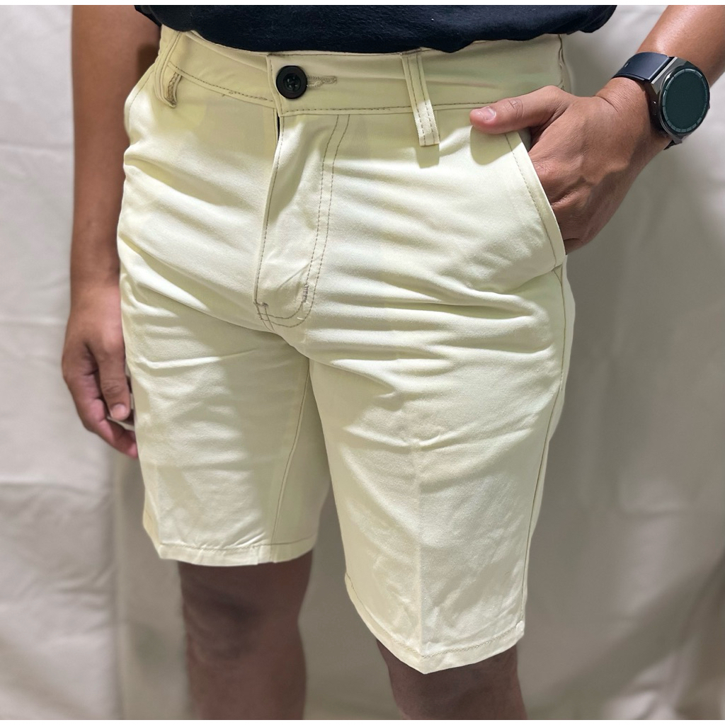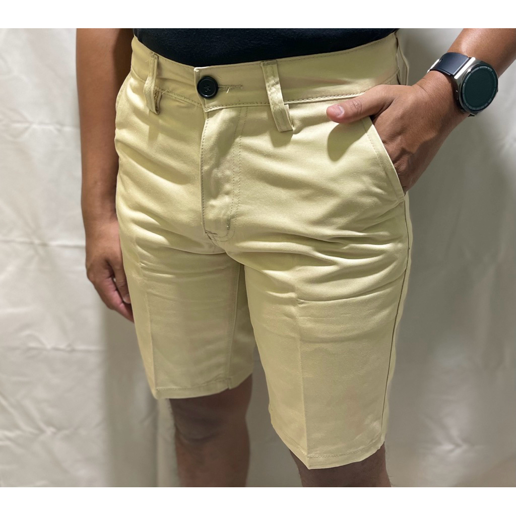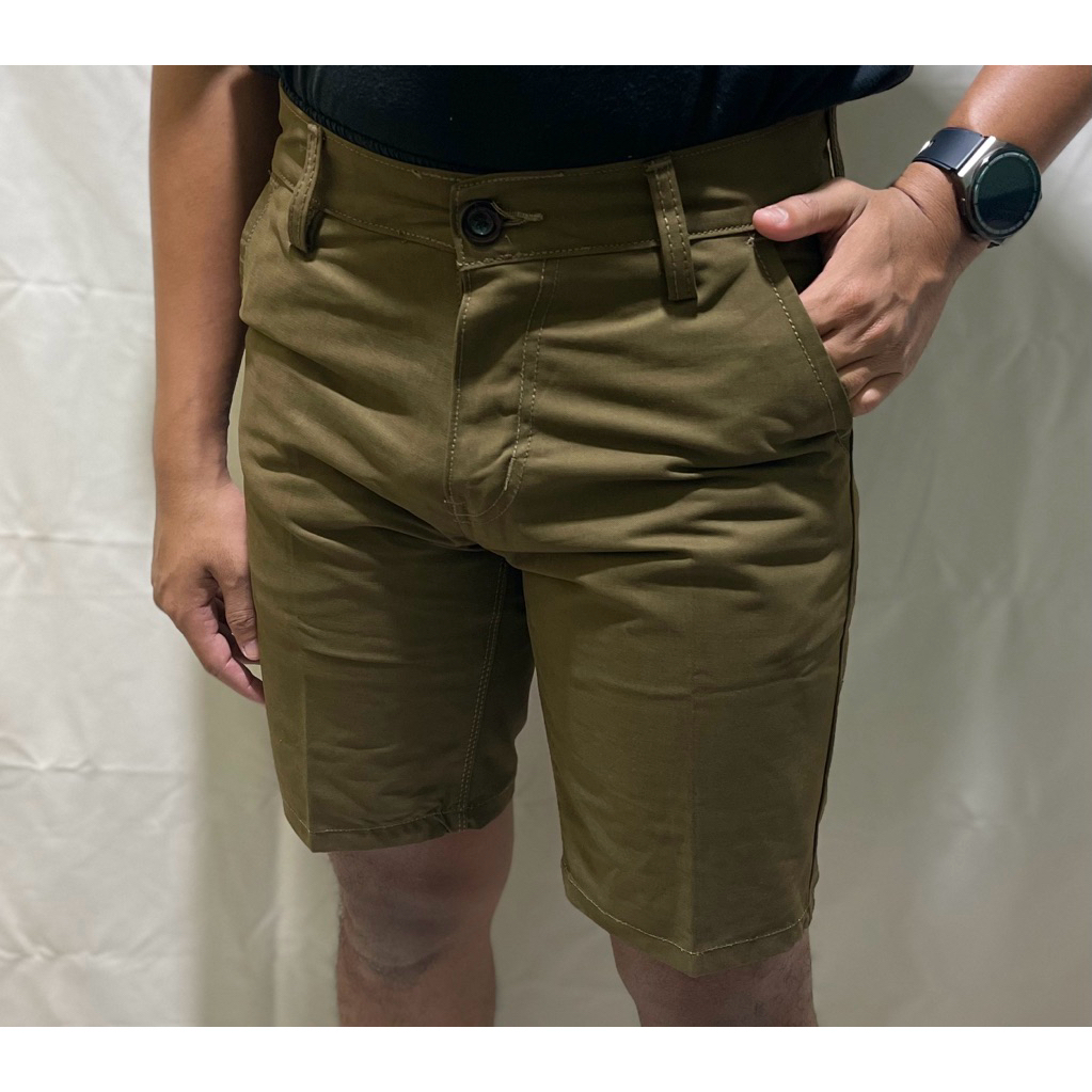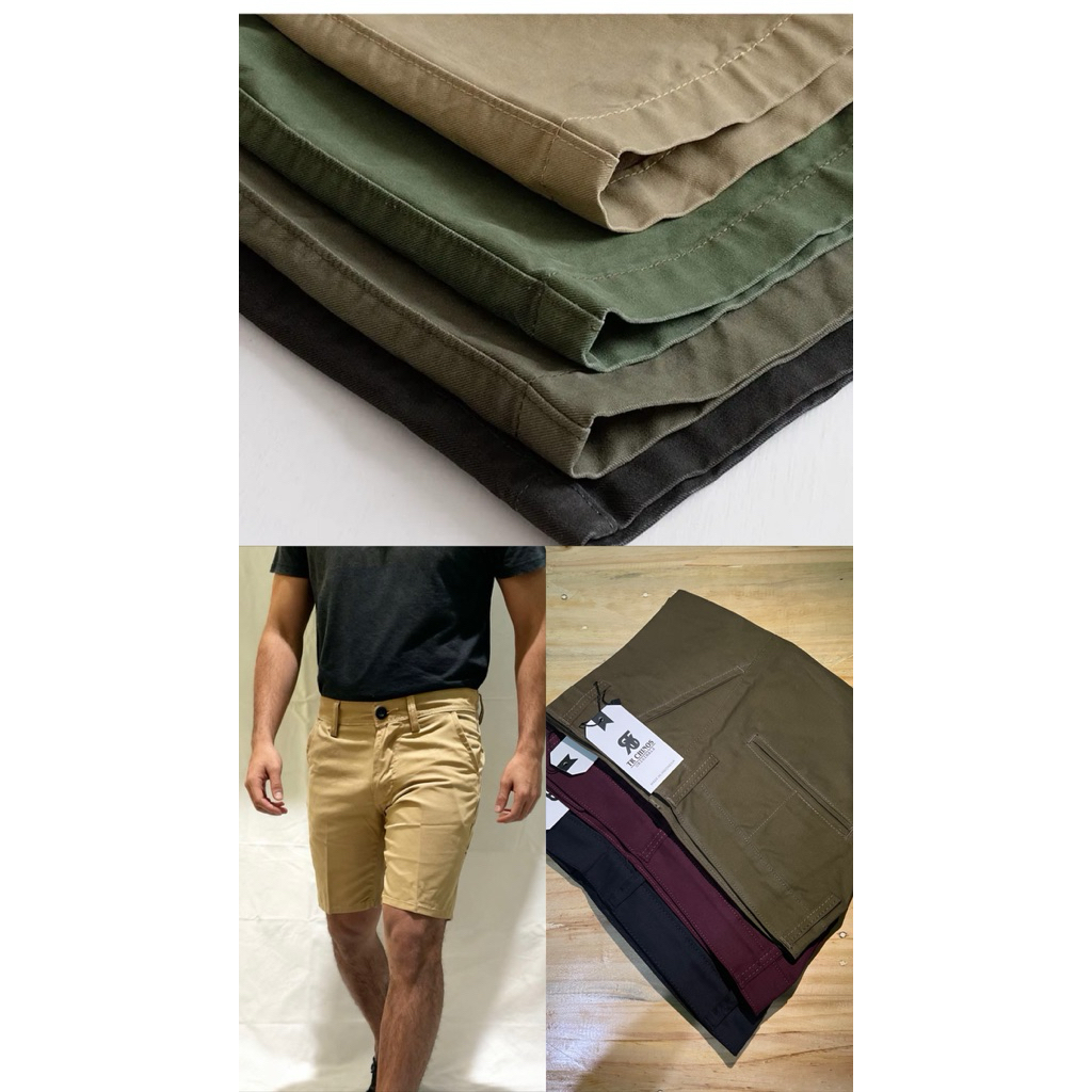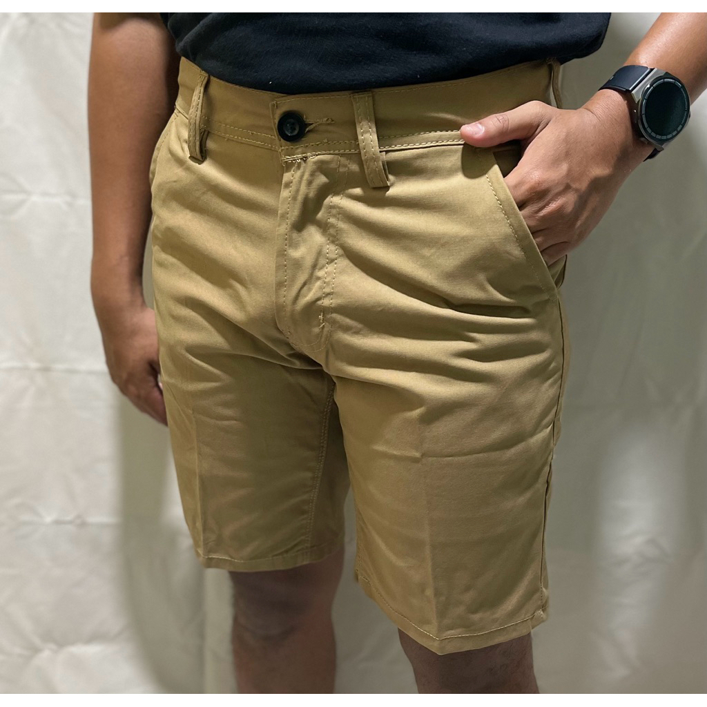 TR CHINOS ORIGINALS - Celana chinos pendek pria premium slim fit warna coklat muda bahan twill katun tebal