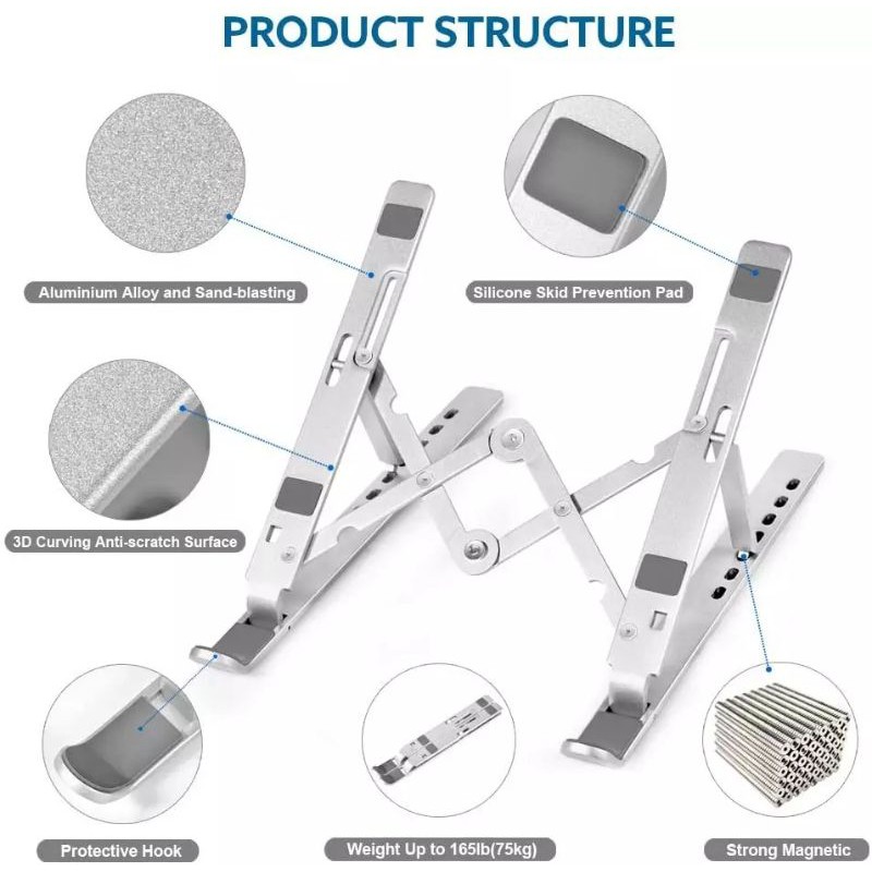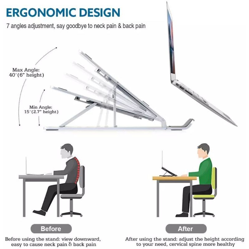 PORTABLE Stand Laptop DUDUKAN Laptop Stand Lipat Aluminum Alloy Macbook Notebook Handphone HOLDER