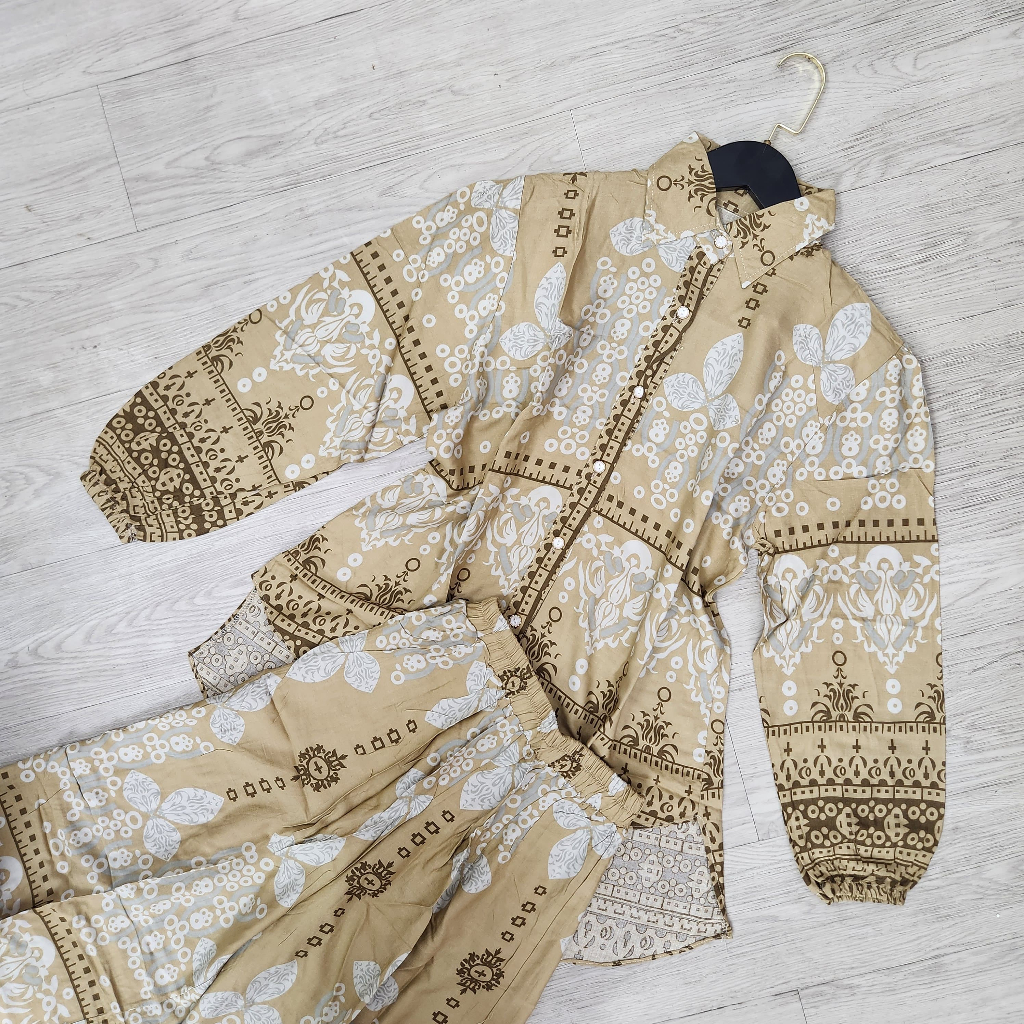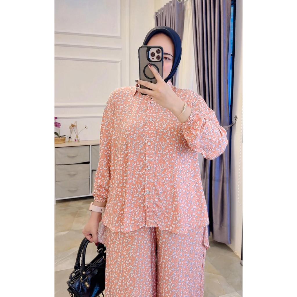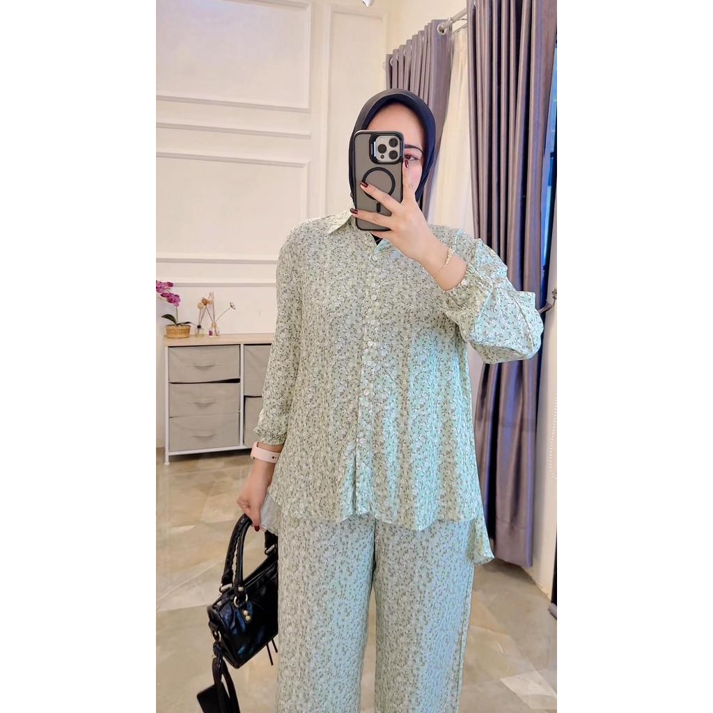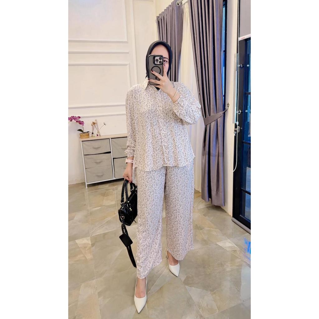 One Set Setelan Rayon Celana Atasan Blouse Wanita Coquette Aesthetic Casual Korean Style Pastel Floral