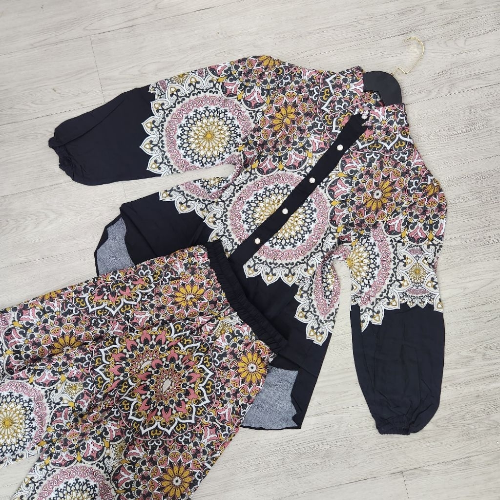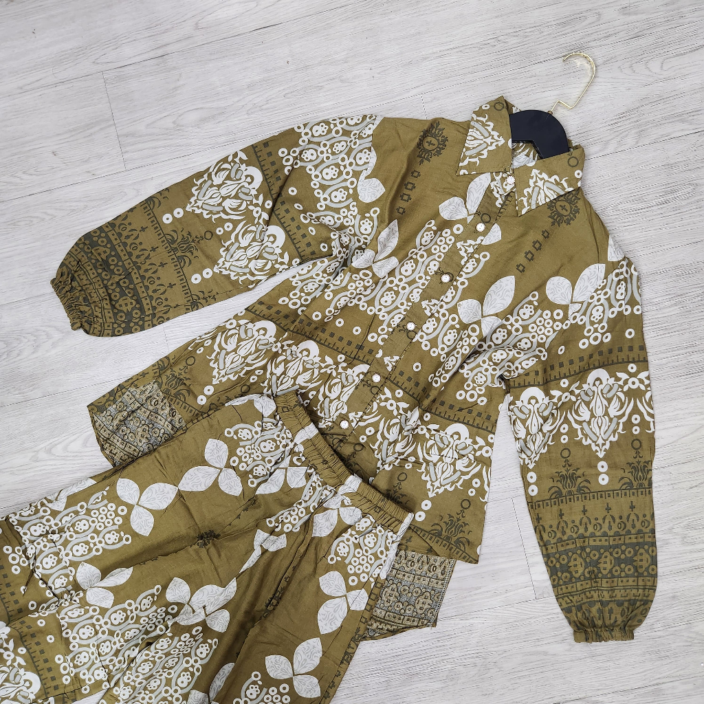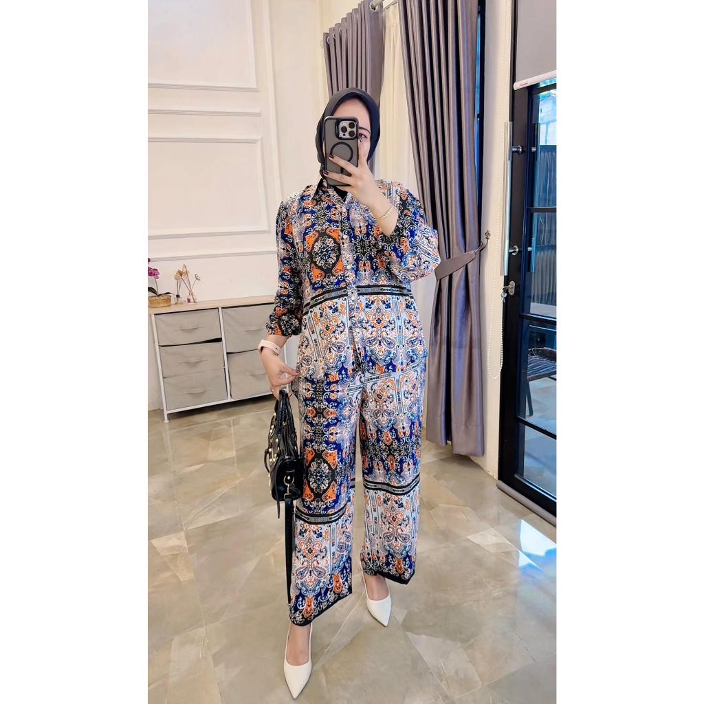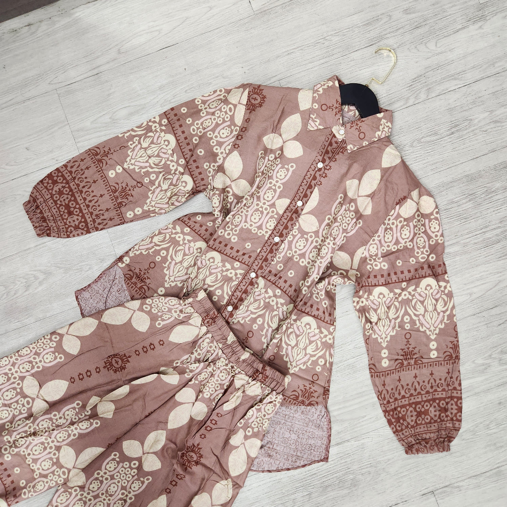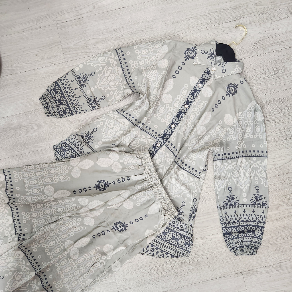 One Set Setelan Rayon Celana Atasan Blouse Wanita Coquette Aesthetic Casual Korean Style Pastel Floral